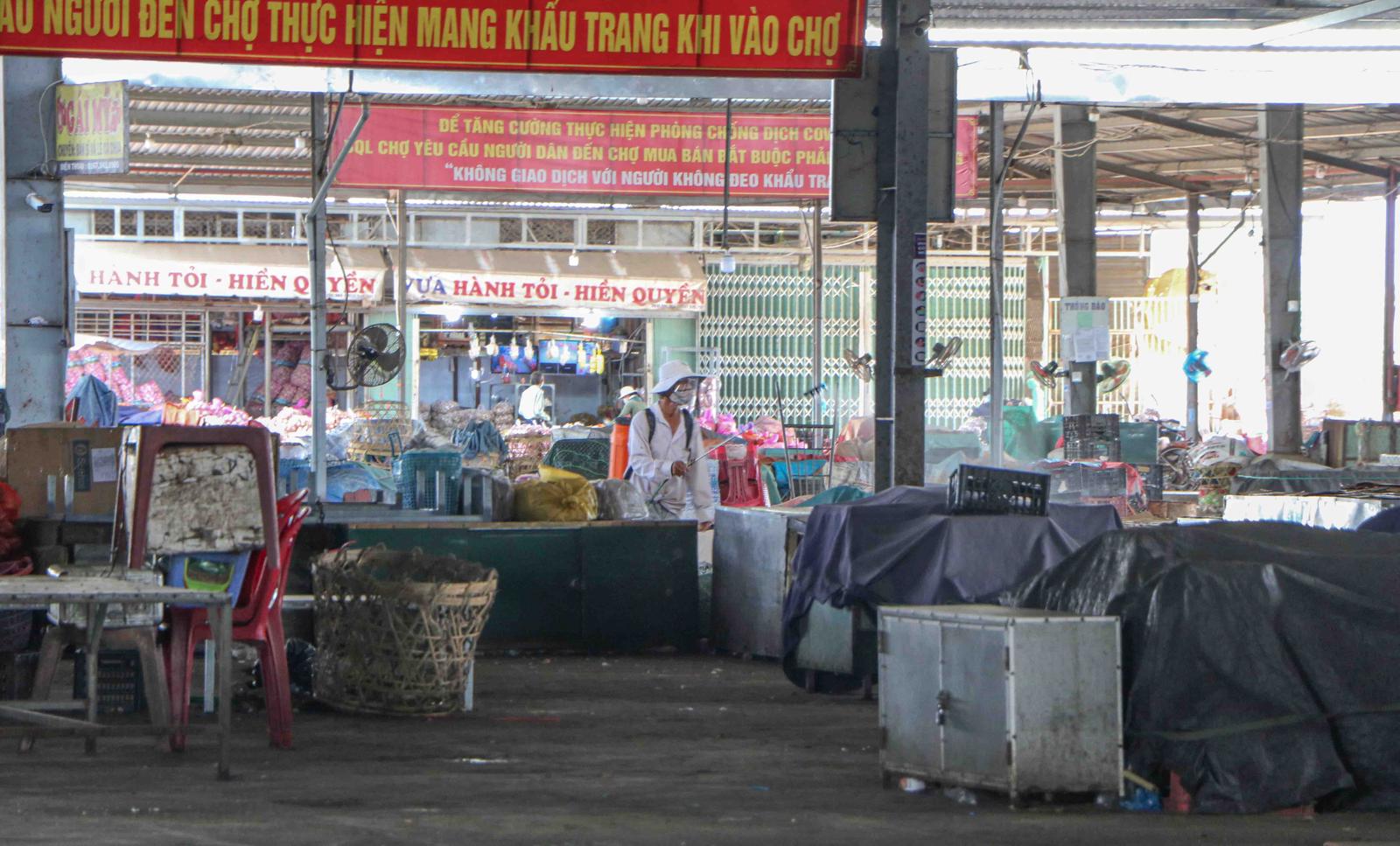 Chợ đầu mối nông sản Phan Rang đã tạm dừng hoạt động từ 9h ngày 19/7 đồng thời phun khử khuẩn chợ. Ảnh: Khoa Lê