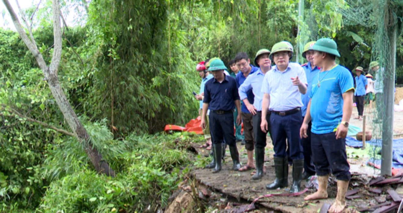 Chủ tịch UBND huyện Thọ Xuân cùng đoàn công tác kiểm tra các điểm sạt lở trên địa bàn. Ảnh: Đỗ Duy Nhã