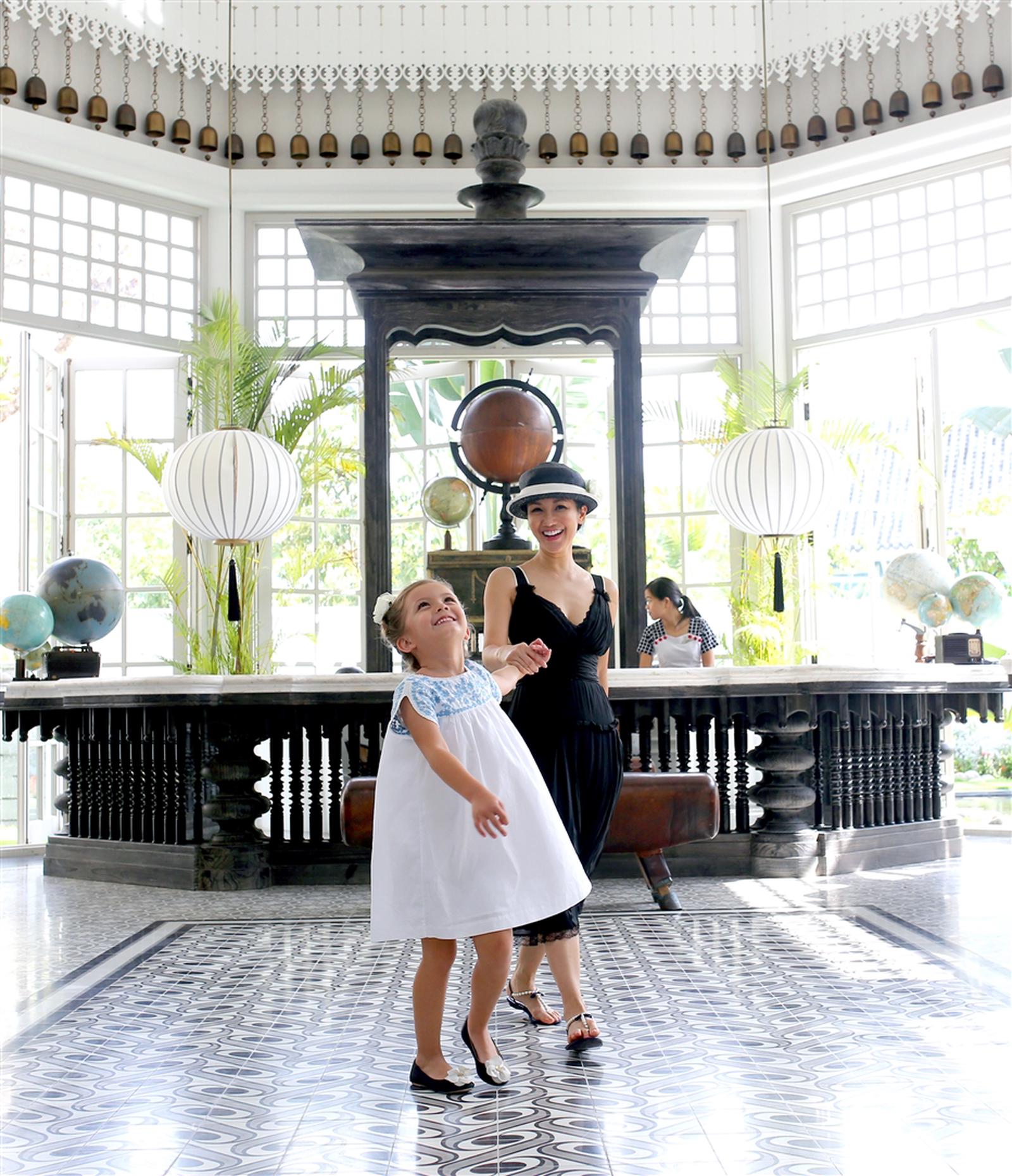 Ba mẹ con Diva say sưa khám phá không gian kiến trúcPháp với dáng dấp của“ngôi trường đại học”mang tên Lamarck University.