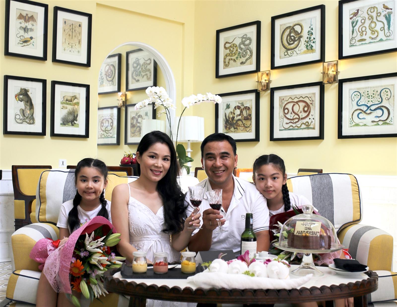 Cặp đôi MC Quyền Linh – DạThảo đã chọnJW Marriott Phu Quoc Emerald Bay làm địa điểm kỷ niệm 12 năm ngày cưới. MC Quyền Linh còn đưa cả mẹ và hai “công chúa” Lọ Lem và Hạt Dẻ đến resort để trải nghiệm nhiều hoạt động thú vị cho cả gia đình.