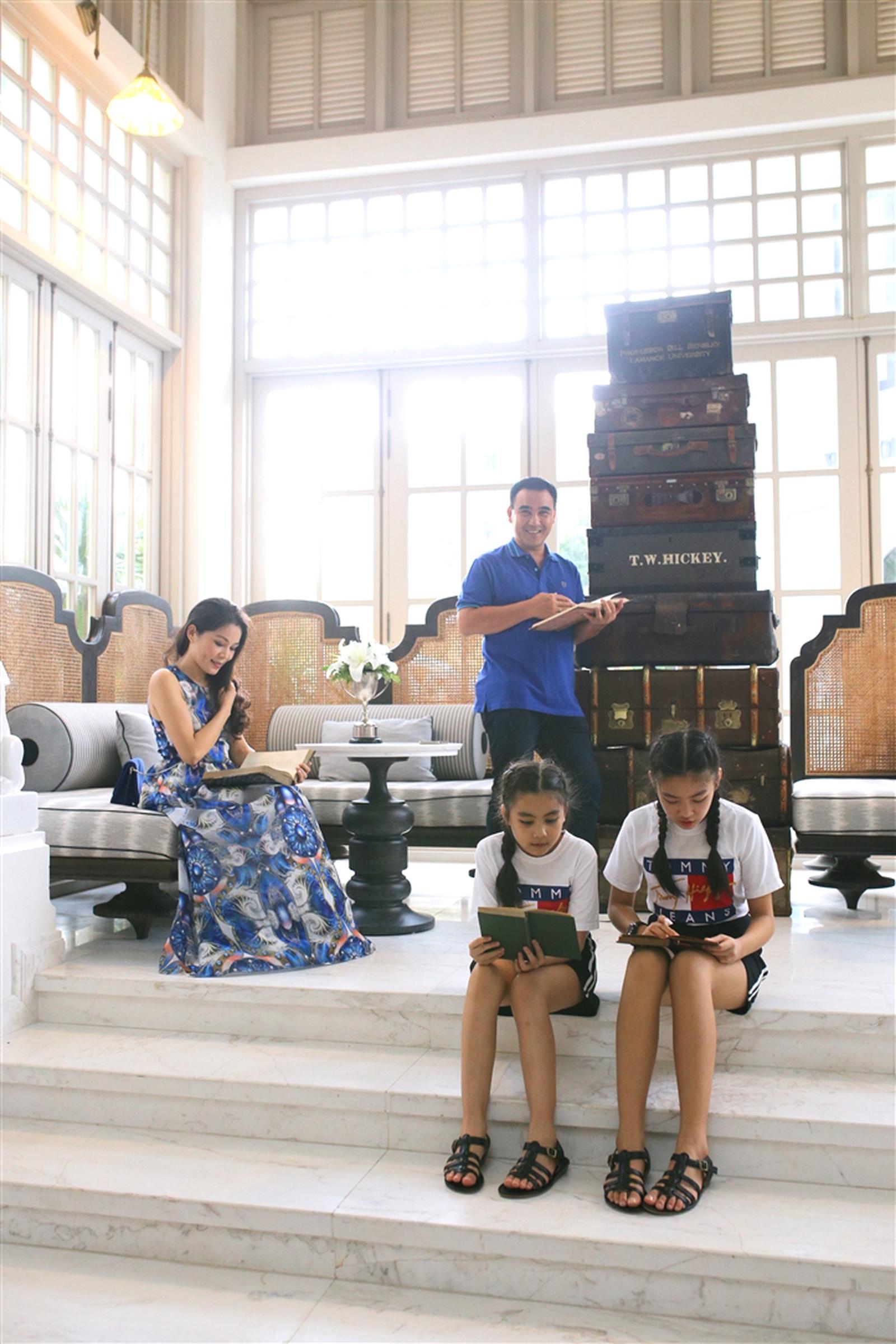 Gia đình MC Quyền Linh hào hứng với “trường đại học” resort này khi thấy sách để ở mọi nơi. Lọ Lem và Hạt Dẻ như những “sinh viên nhí” say sưa khám phá kho kiến thức của nhân loại.