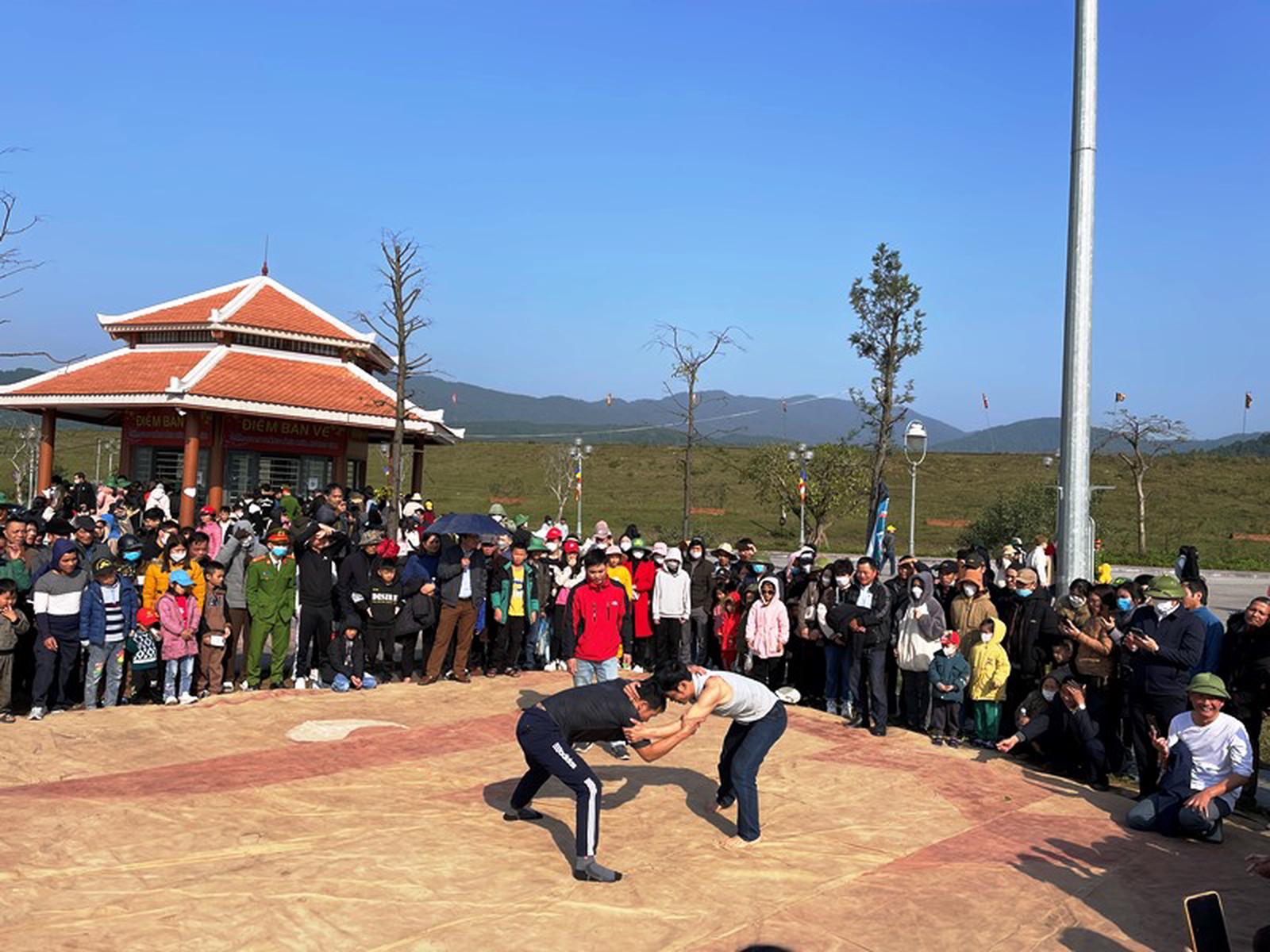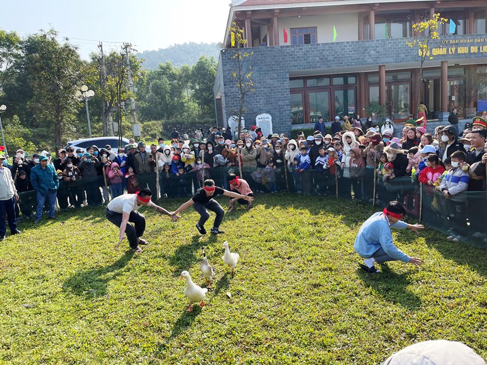 Các trò chơi dân gian như đấu vật thể hiện tinh thần thượng võ trong dân gian được đưa vào các hoạt động trong các lễ hội chùa Hương Tích hàng năm Các cụ già chơi cờ tướng Các bạn trẻ hào hứng xem chọi gà Trò chơi "bịt mắt bắt vịt" thu hút đông đảo người chơi Ông Võ Thành Chung, Trưởng ban Quản lý Khu du lịch chùa Hương Tích, cho biết, dịp Tết Quý Mão, địa điểm này đã đón hơn 50.000 lượt khách về chùa hành hương, vãn cảnh Du khách khắp nơi đổ về chùa Hương Tích ở Hà Tĩnh ngày khai hội khiến dịch vụ xe điện, thuyền, cáp treo dù hoạt động hết công suất vẫn không kịp đáp ứng nhu cầu