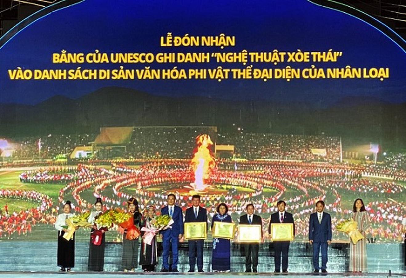 Với việc được UNESCO ghi danh “Nghệ thuật Xòe Thái” vào danh sách di sản văn hóa phi vật thể đại diện của nhân loại, Bí thư Tỉnh ủy Yên Bái Đỗ Đức Duy cam kết "biến di sản thành tài sản” phục vụ phát triển kinh tế - xã hội của địa phương. Ảnh: Bùi Bình