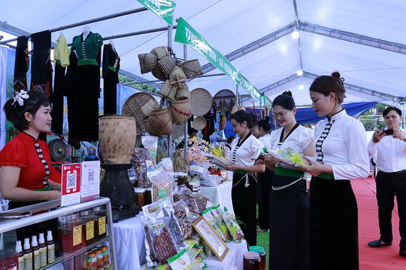 Gian trưng bày các sản phẩm OCOP của huyện Văn Chấn. Ảnh: Bùi Bình