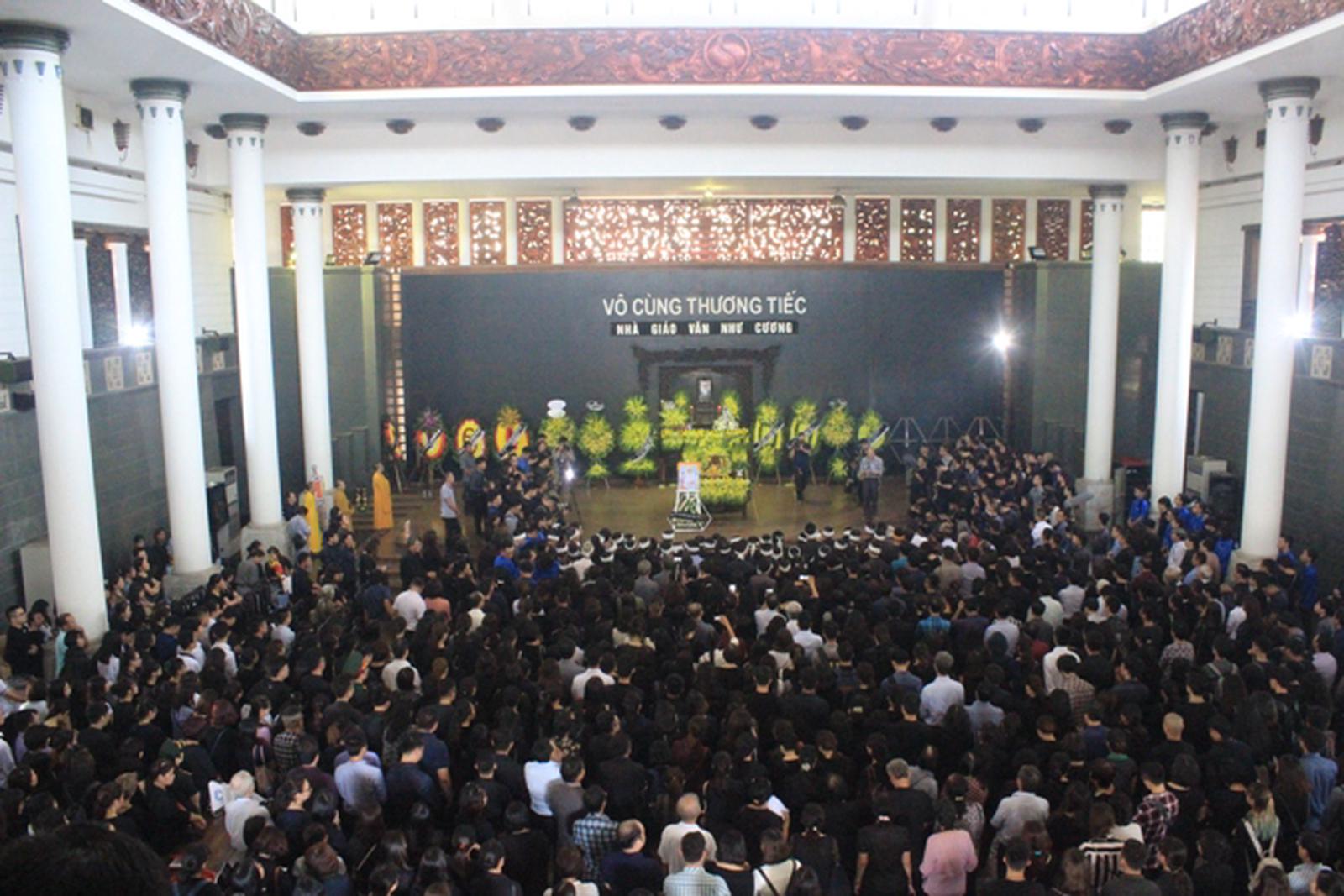 (Thanh tra) - Sáng 12/10, tại nhà tang lễ Bộ Quốc phòng (Hà Nội), hàng nghìn học sinh, đồng nghiệp, người thân đã có mặt để tiễn PGS Văn Như Cương về nơi an nghỉ cuối cùng.
