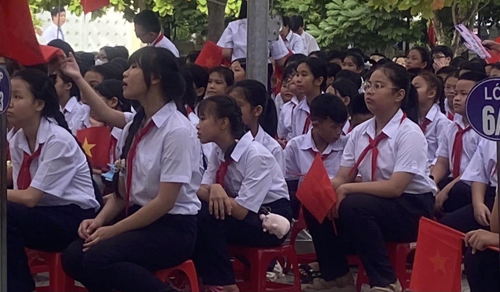 Học sinh các trường nghiêm trang trong lễ khai giảng. Ảnh: N.P