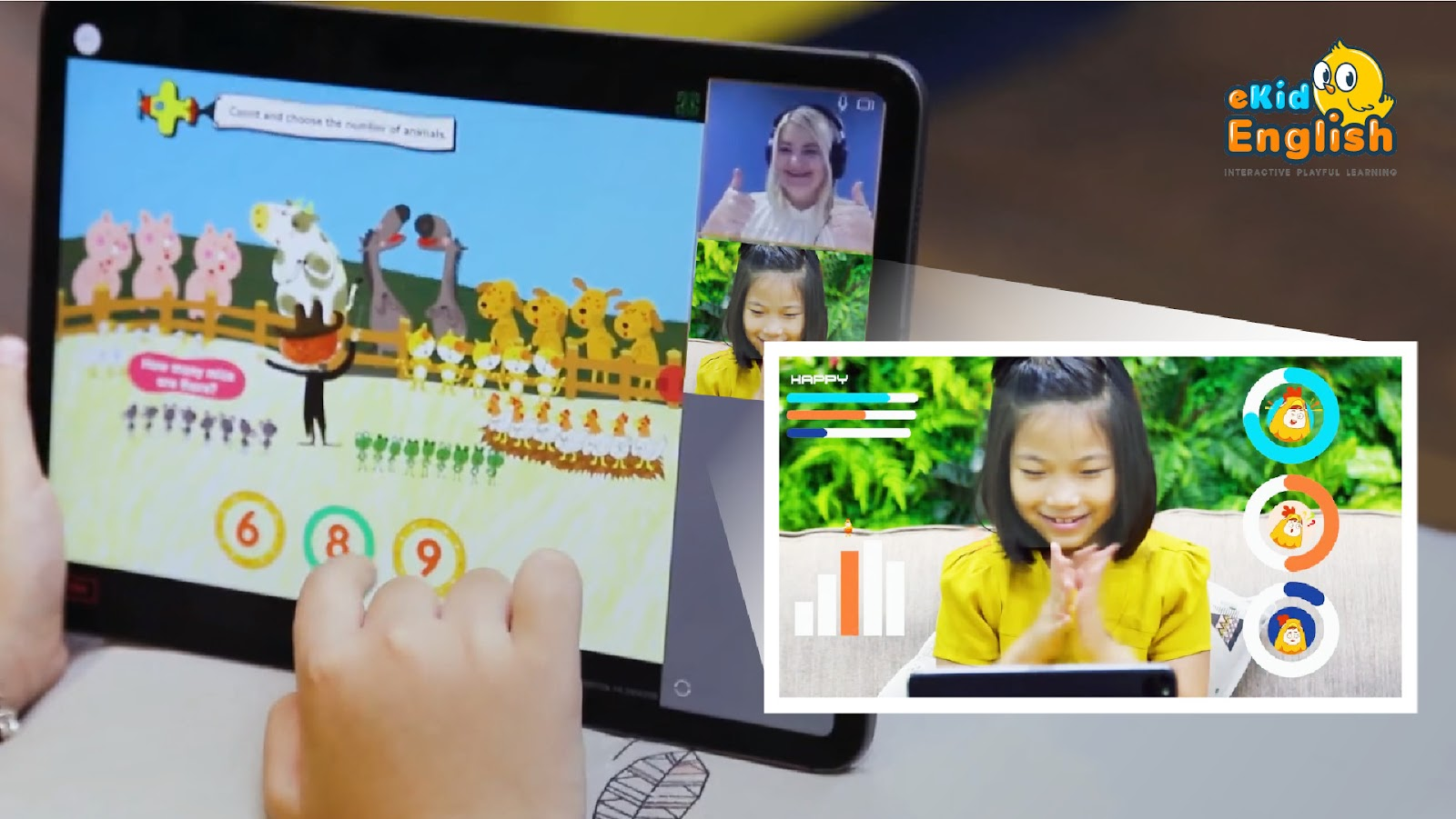 Với ứng dụng công nghệ đa phương tiện trên nền tảng riêng, eKidEnglish bảo đảm được tính bảo mật và tính tương tác cao. Quá trình học được tiến hành trực tiếp với giáo trình số hóa sinh động, giáo viên và học viên có thể thao tác trên giáo trình trực tiếp theo thời gian thực. Đó cũng là khác biệt nổi bật so với các hình thức học online theo kiểu video call thuần túy thông thường.