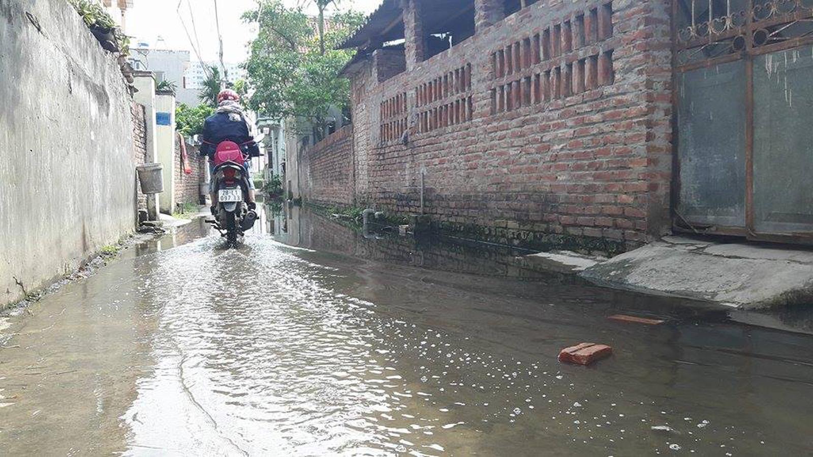 PV có mặt tại hiện trường vào lúc 8h30 sáng 12/5, một số người dân bức xúc: Cứ vài ba ngày lại có một đợt nước ngập tràn cả ngách. Nước lúc đầu còn trong, sau đó lẫn với nước mương, cống thối tràn cả ngách, đen ngòm, bốc mùi hôi thối. Sinh hoạt của người dân ảnh hưởng nặng nề, người đi bộ phải lội bẩn, trẻ em phải cõng qua ngách để đi học, nhiều hộ thậm chí còn phải kê, bắc gạch để đi vào nhà.