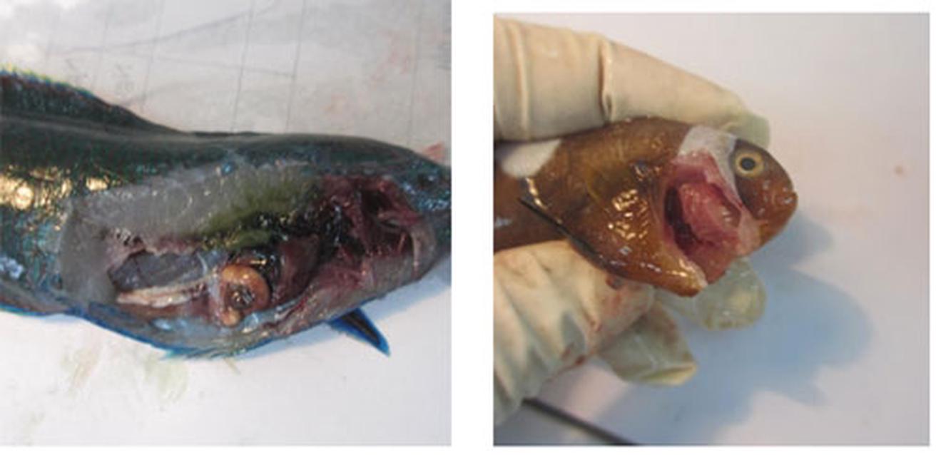 Hình ảnh so sánh giữa cá chết do phenol (bên trái) và cá chết tự nhiên.