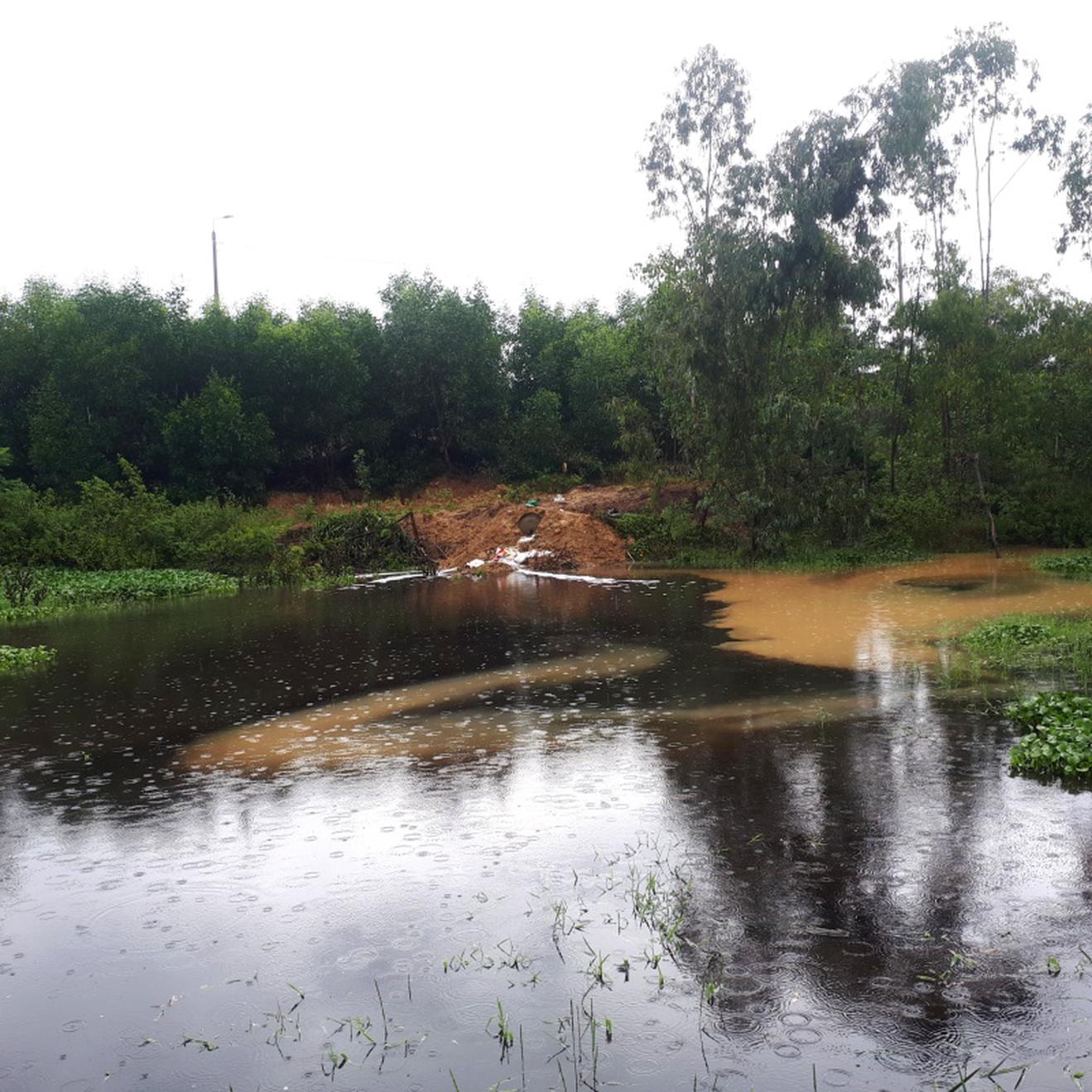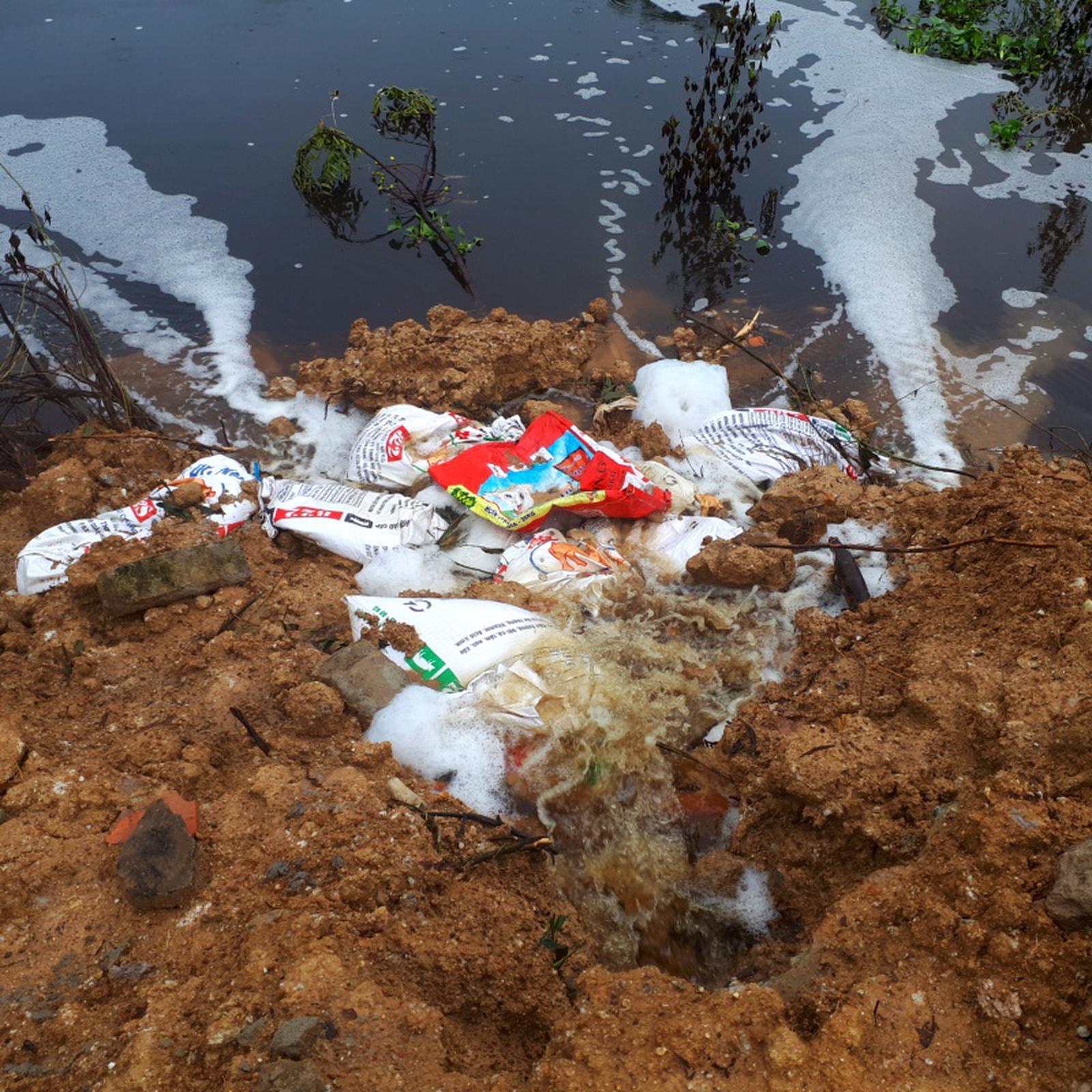 Nước bẩn vẫn chảy ồ ạt từ bãi rác ra hồ nước bên ngoài bãi rác