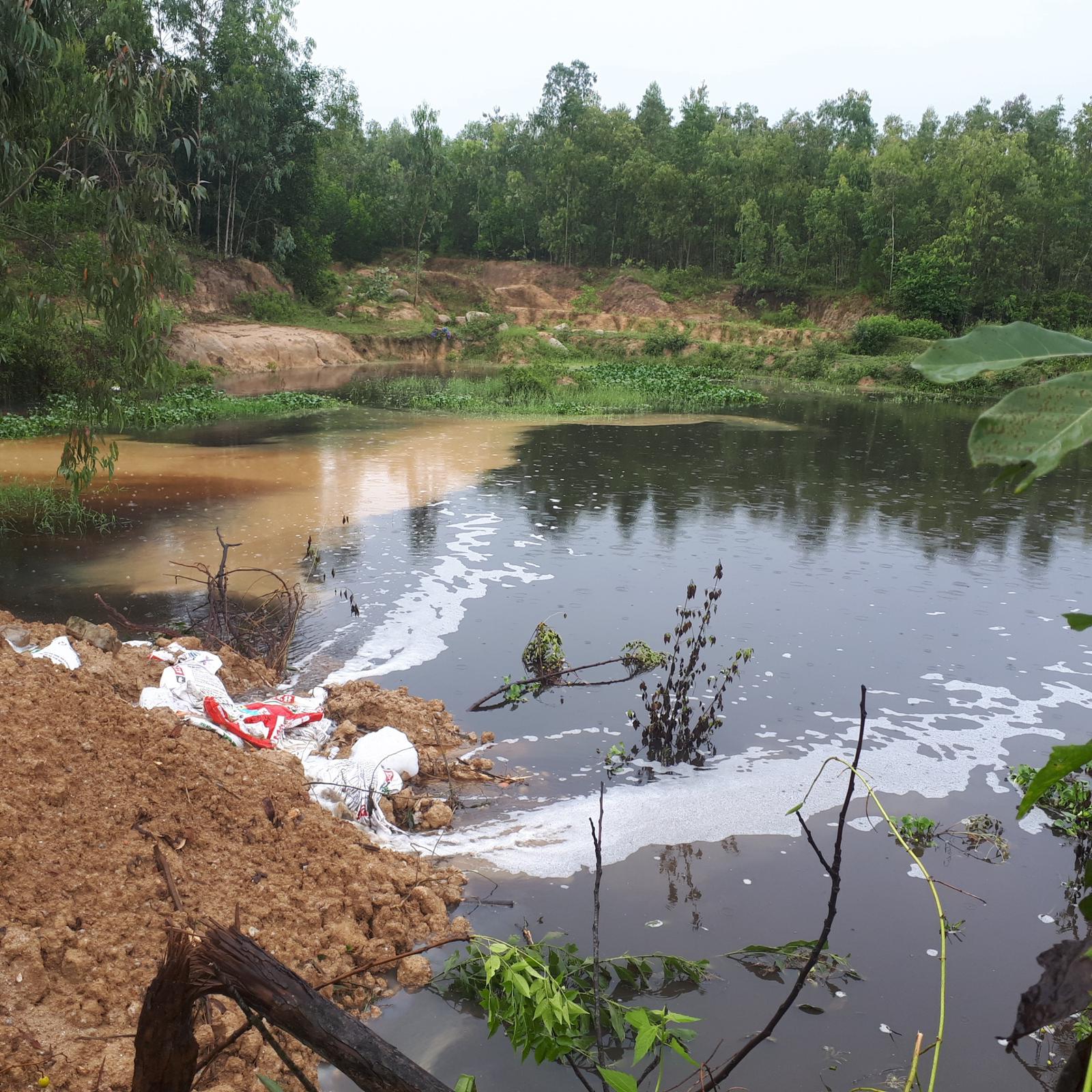 Đặc biệt, khi đi ngược lên thượng nguồn, phóng viên phát hiện ở phía ngoài bãi xử lý rác thải huyện Lộc Hà (thuộc khu vực Khe Cấy, xã Hồng Lộc) có một hồ chứa nước khoảng 200m2 nước đen kịt, bốc mùi hôi thối nghiêm trọng.