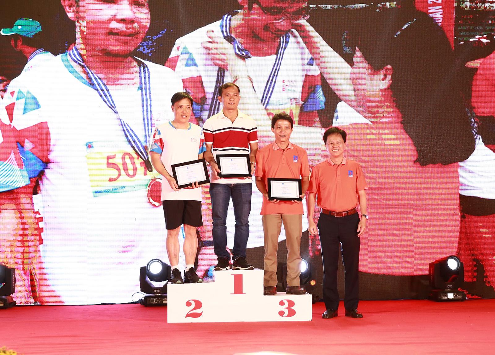 Ông Bùi Minh Tiến, Tổng giám đốc BSR trao giải cho các nam VĐV đạt thành tích cao ở cự ly 10km