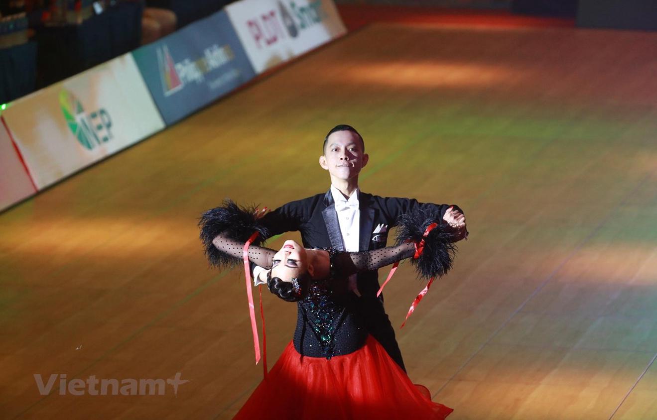 Cặp Nguyễn Đức Hòa và Nguyễn Thị Hải Yến (Dancesport) giành HCV. (Ảnh: Ngọc Duy/Vietnam+)
