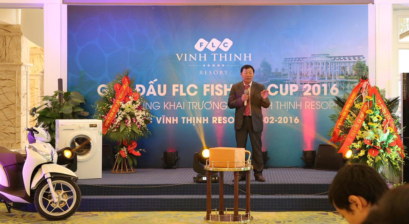 Phát biểu khai mạc giải đấu, bà Phạm Thị Hải Ninh - Giám đốc Công ty Cổ phần FLC Travel - chia sẻ: “Giải đấu FLC Fishing Cup là một trong những hoạt động chào đón lễ khánh thành FLC Vĩnh Thịnh Resort diễn ra vào ngày 6/3 tới. Với khuôn viên rộng lớn, sở hữu hồ thiên nhiên rộng khoảng 1ha, phong cảnh non nước hữu tình, khí hậu trong lành, không gian yên tĩnh cùng những hạng mục giàu tiện ích, FLC Vĩnh Thịnh Resort có thể coi là địa điểm đủ sức hút để níu chân cần thủ cũng như du khách miền Bắc, nhất là khu vực Hà Nội”.