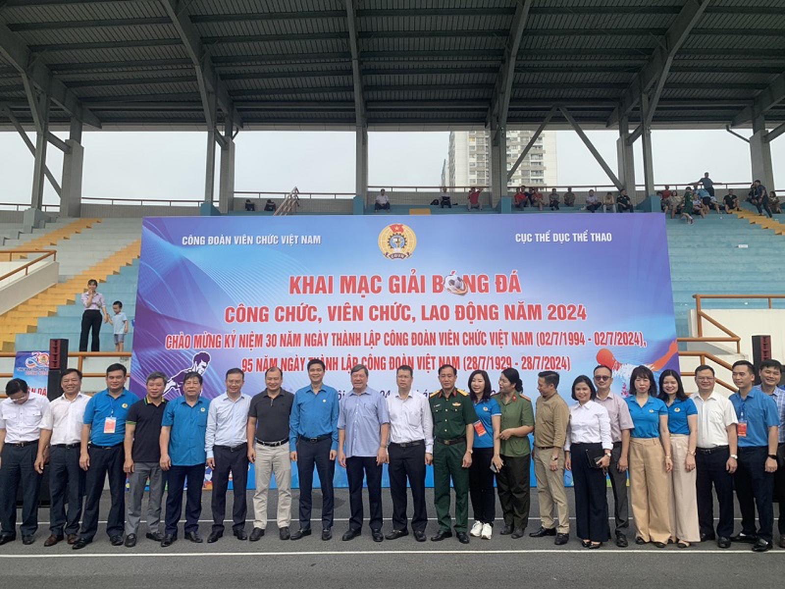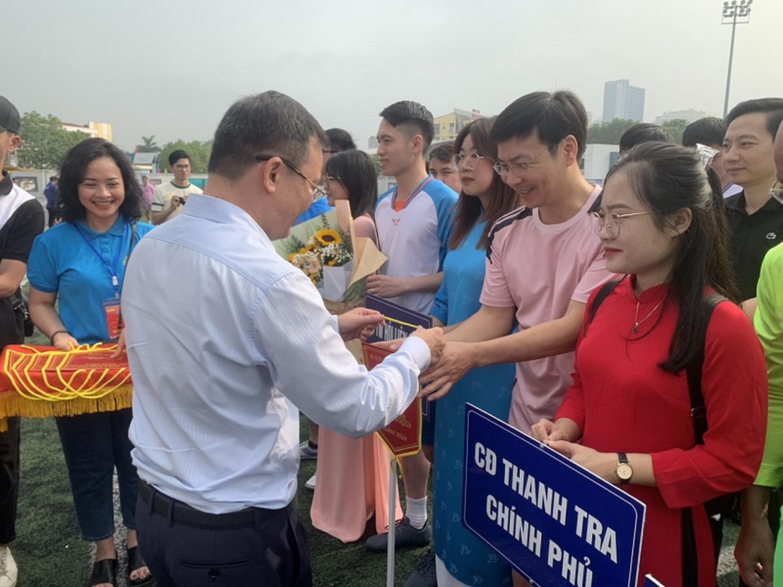 (Thanh tra) - Sáng nay (4/5), tại Sân vận động quận Tây Hồ, Hà Nội, Công đoàn Viên chức Việt Nam phối hợp với Cục Thể dục thể thao, Bộ Văn hóa Thể thao và Du lịch, khai mạc Giải Bóng đá nam Hội thao Cán bộ, công chức, viên chức, lao động năm 2024.