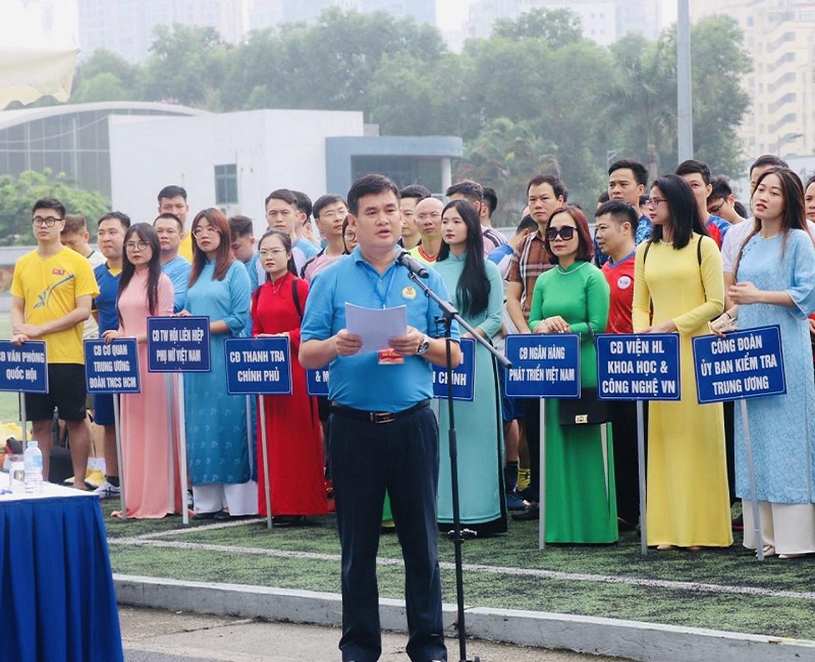 Phát biểu khai mạc, ông Thái Hoài Nam, Phó Chủ tịch Công Đoàn viên chức Việt Nam, Phó Trưởng Ban Tổ chức hội thao cho biết, Giải Bóng đá nam được Công đoàn Viên chức Việt Nam và Cục Thể dục thể thao tổ chức với sự tham gia của 32 đội bóng cùng hơn 600 vận động viên và các thành viên của đội bóng. 32 đội bóng tham gia được chia thành 8 bảng với 64 trận đấu, các đội sẽ thi đấu vòng bảng theo thể thức vòng tròn tính điểm, sau vòng bảng sẽ chọn 2 đội nhất, nhì bảng vào thi đấu vòng loại trực tiếp ở các trận vòng 1/8, tứ kết, bán kết và chung kết. Giải Bóng đá hứa hẹn sẽ mang đến nhưng trận cầu sôi động, kịch tính và hấp dẫn.