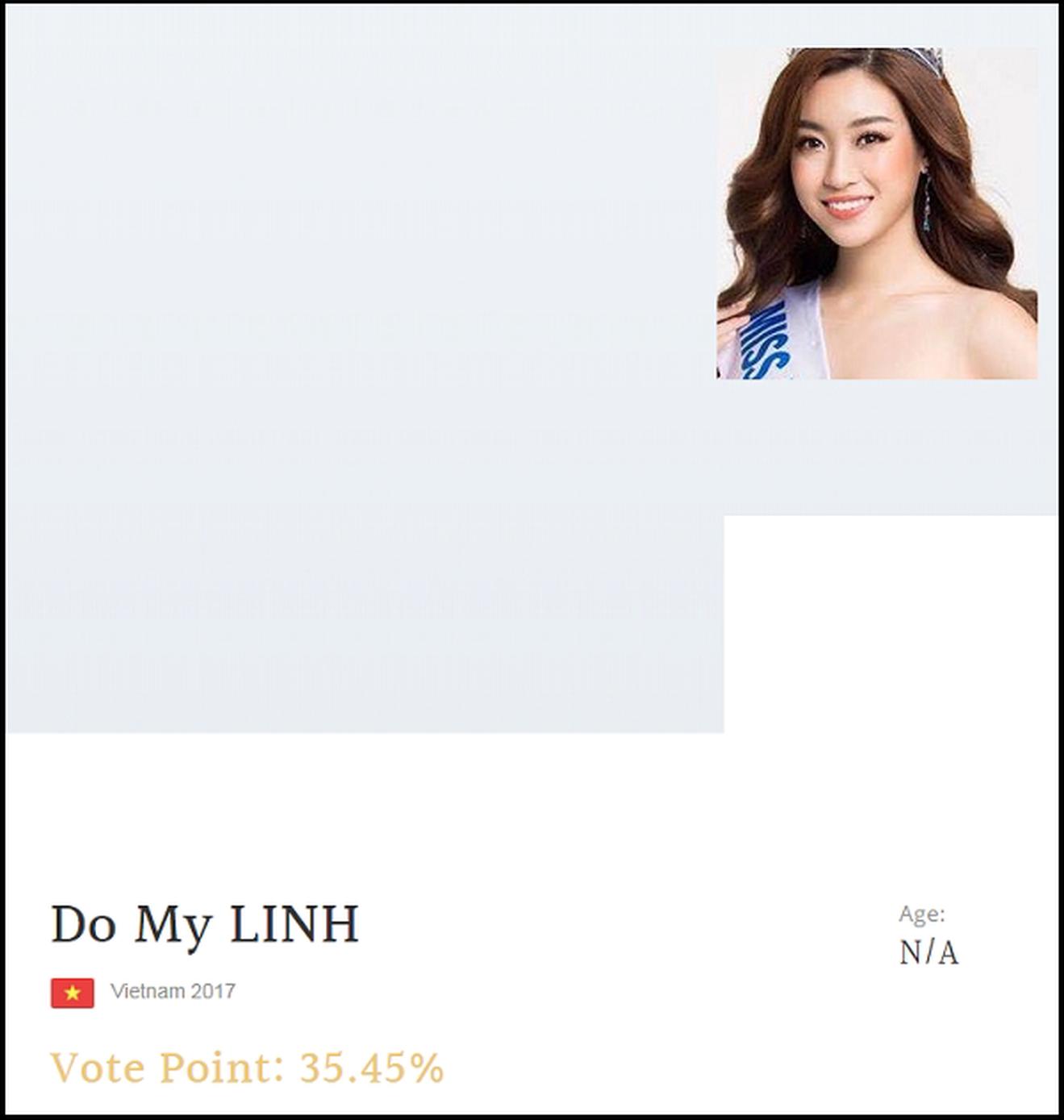 Lượng vote của Đỗ Mỹ Linh là 35,45% - dẫn đầu cuộc thi Hoa hậu Thế giới.