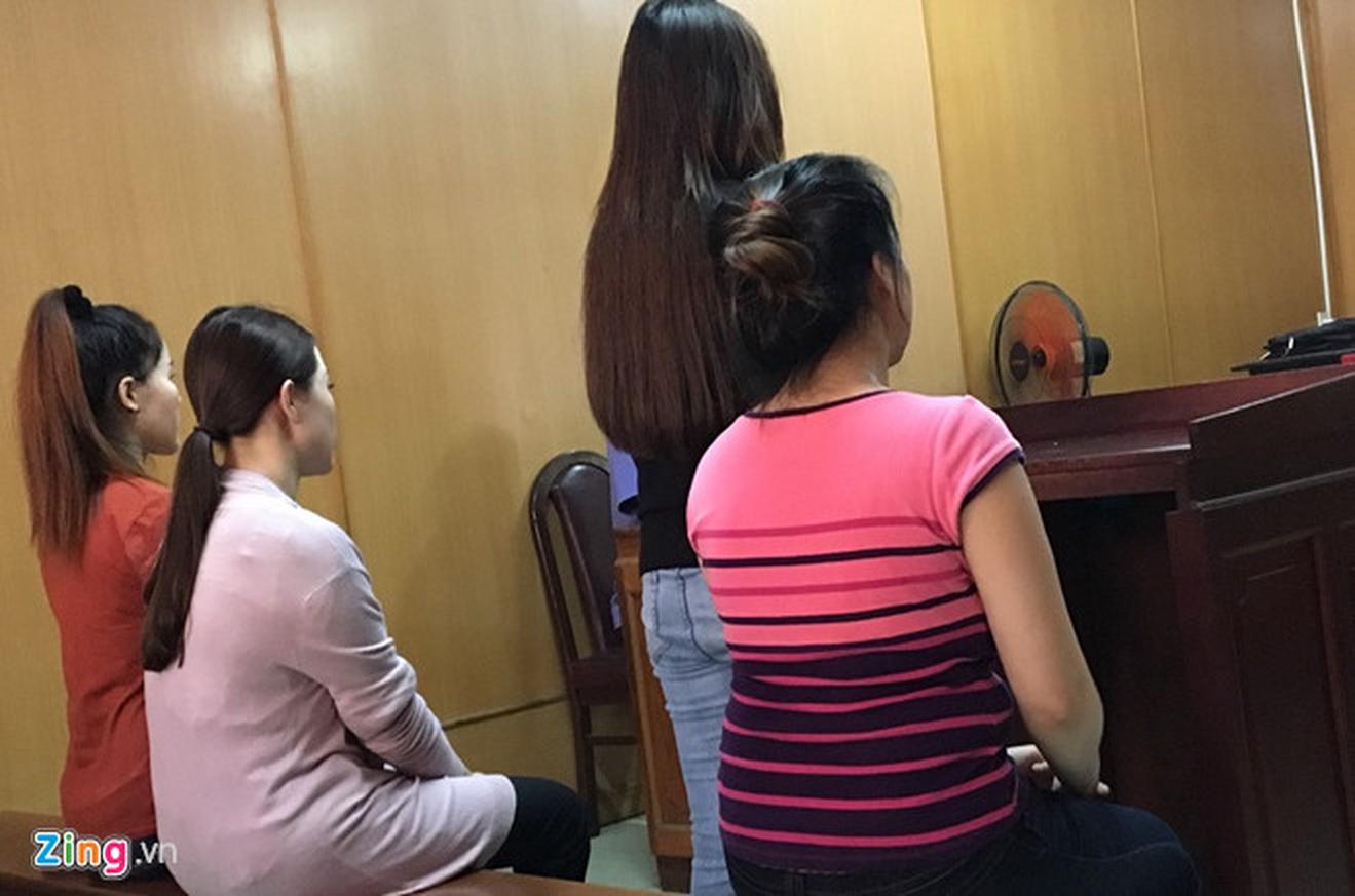 Tại tòa, các bị cáo Ngọc, Chi, Tiền thừa nhận toàn bộ hành vi phạm tội, xin HĐXX khoan hồng. Riêng bị cáo Hiền quanh co, chối tội, cho rằng tiền mình nhận được do khách tặng "quà" khi đi ăn cùng chứ không phải tiền từ việc bán dâm. Tuy nhiên, sau khi HĐXX và VKS thẩm vấn, bị cáo này mới nhận tội theo như cáo trạng quy kết.