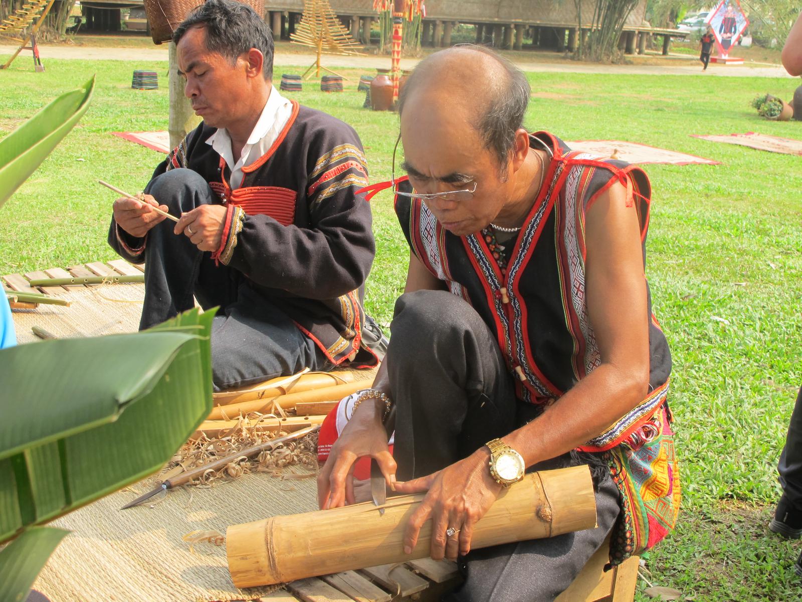 “Mình vừa tiếp một đoàn khách nước ngoài, họ mua mấy cây đàn Chapi, làm kỷ niệm. Trước khi mua, họ bảo mình hát, múa, đàn cho họ nghe. Xem mình biểu diễn xong, họ thích lắm”, ông Giấp mở đầu câu chuyện, giọng rất vui.