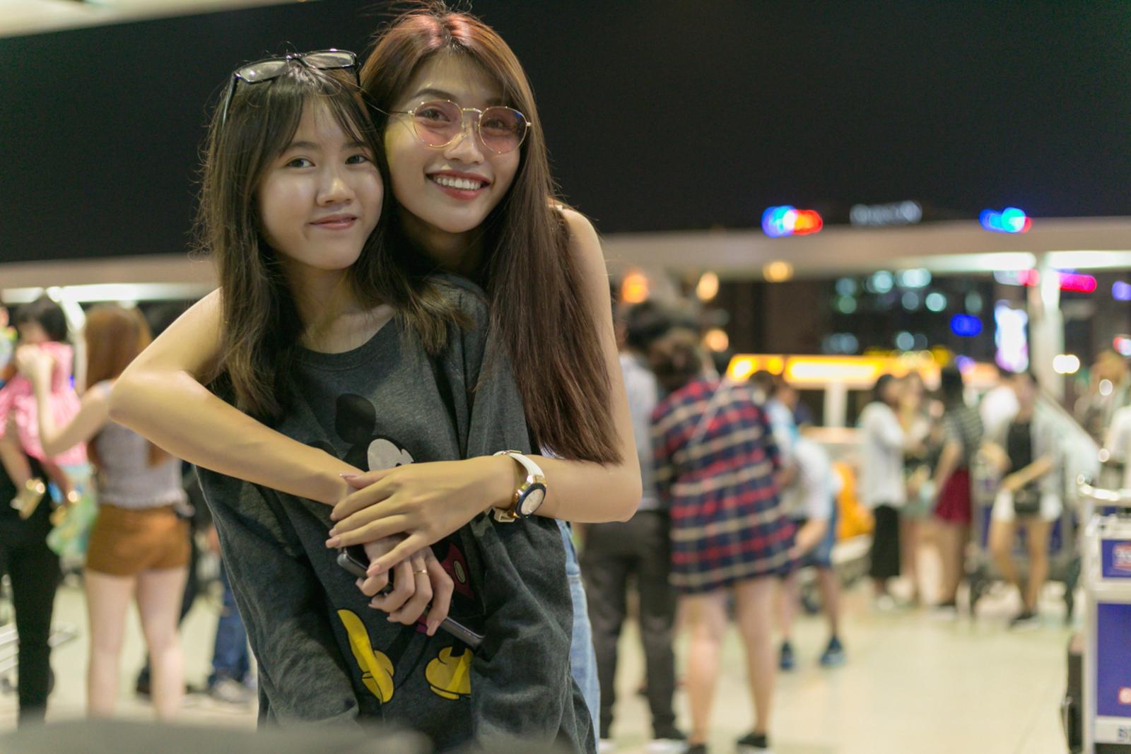 Đồng hành cùng Quỳnh Châu là ca sĩ Mai Tiến Dũng. Vốn quen nhau từ trước, cả hai khá thân thiết và liên tục trò chuyện, hỏi thăm nhau tại sân bay. Quỳnh Châu, Mai Tiến Dũng và stylist Travis Nguyễn cũng tranh thủ selfie trong lúc chờ đợi lên máy bay.