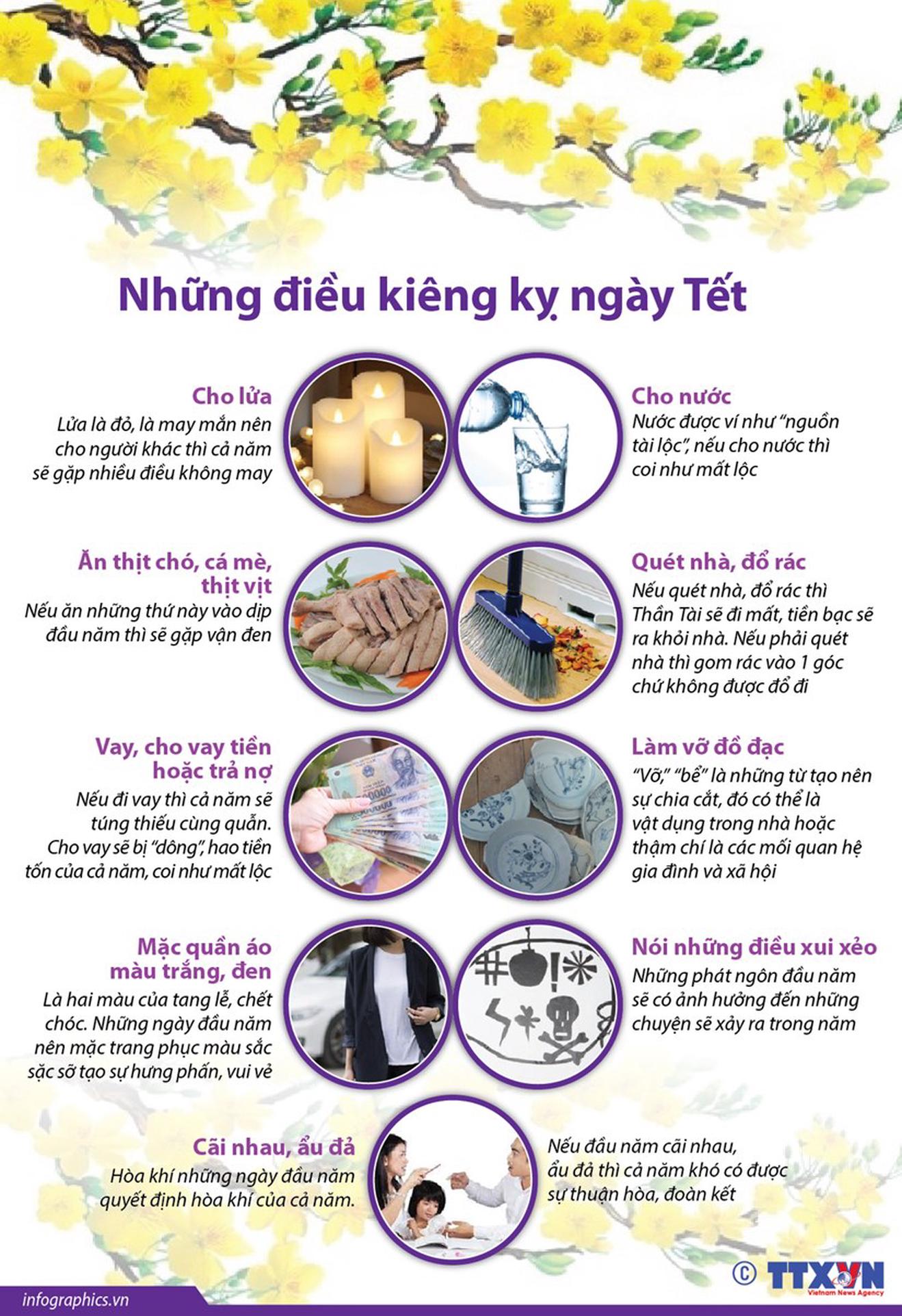 Xuất phát từ quan niệm cho rằng ngày đầu Năm mới gặp những điều xui xẻo thì sẽ xui xẻo cả năm nên từ xưa trong dân gian có nhiều điều kiêng kỵ trong những ngày Tết Nguyên đán./.