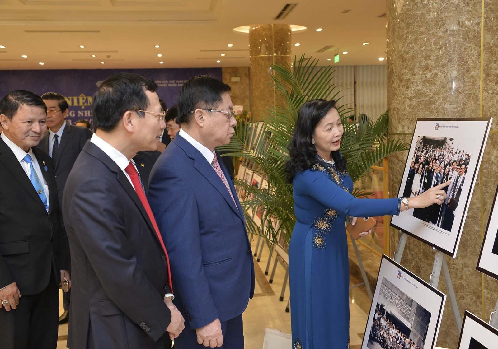 Các đại biểu tham quan trưng bày ảnh tại lễ kỷ niệm. Ảnh: TH