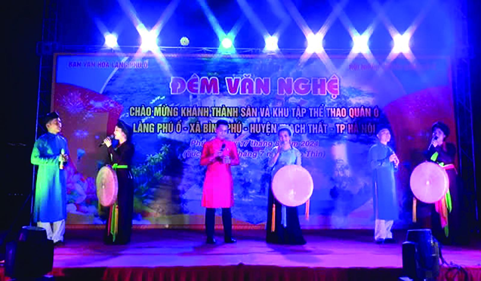 Để chào mừng khu thể thao Quán Ó hoàn thành, đưa vào sử dụng, Ban Văn hóa và Hội những người con làng Phú Ổ đã tổ chức đêm văn nghệ, với sự tham gia của các liền anh, liền chị đến từ quê hương quan họ Bắc Ninh, biểu diễn những làn điệu dân ca mượt mà, đằm thắm, thu hút đông đảo nhân dân đến xem và thưởng thức.
