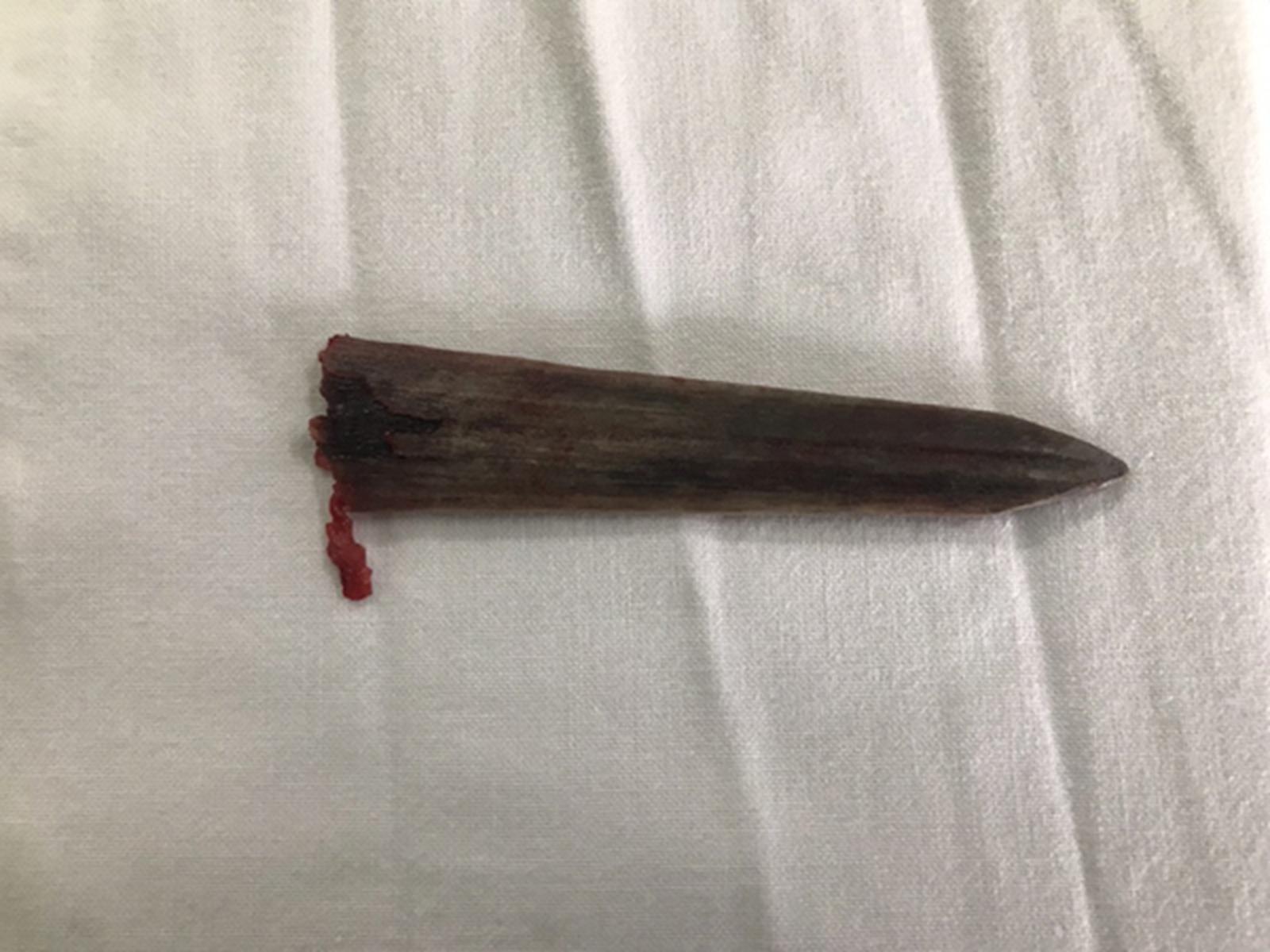 Đầu mũi cá kiếm được gắp ra từ khoang phổi bệnh nhân Lý. Ảnh: LH