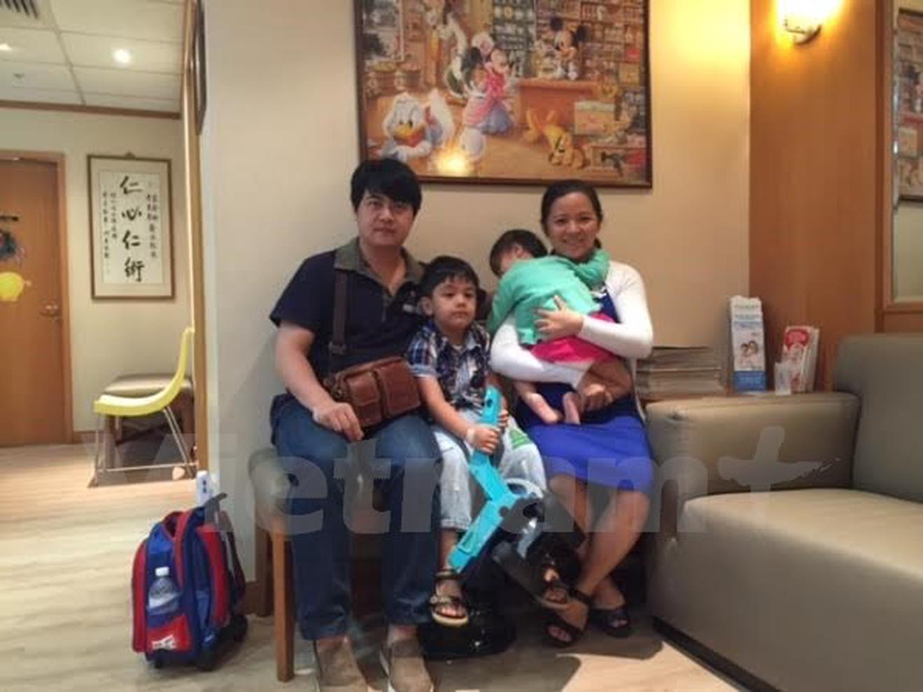 Gia đình anh Tuấn Anh cho hai con sang Singpore tiêm phòng vắcxin 6 trong 1. (Ảnh: Mỹ Bình/Vietrnam+)