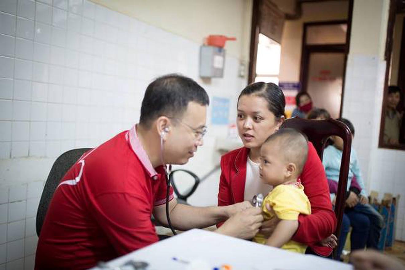 Các bác sĩ khám sàng lọc miễn phí cho trẻ em nghèo. Ảnh: CT