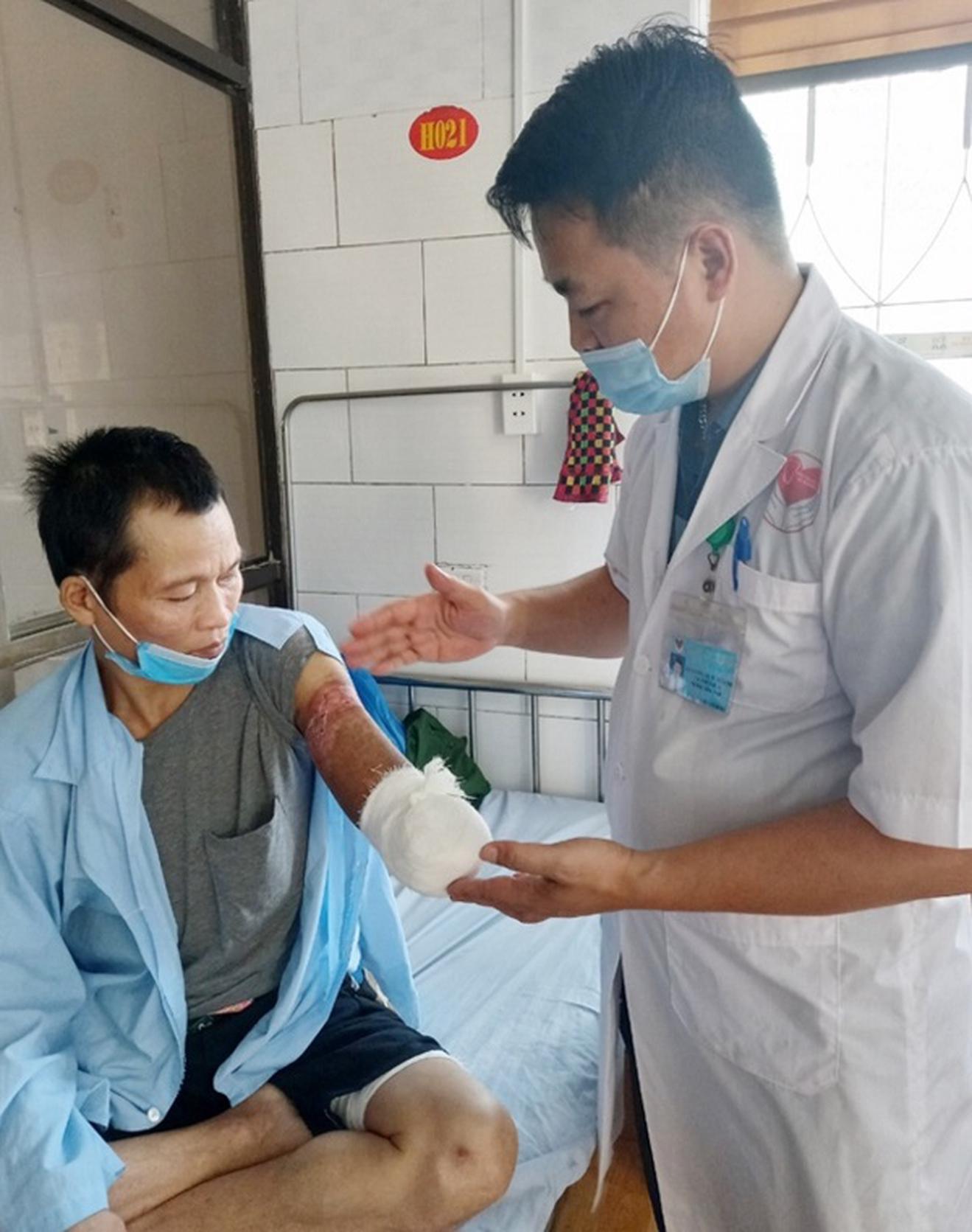 Sau khi có quả xét nghiệm không có rối loạn đông máu, bằng kinh nghiệm và sự nỗ lực của tập thể y, bác sỹ Bệnh viện Đa khoa huyện Vị Xuyên, người bệnh được hội chẩn và trải qua 3 cuộc phẫu thuật cắt bỏ 2 xương cẳng tay để lại khớp khuỷu; cắt lọc hoại tử; vá da tự thân.