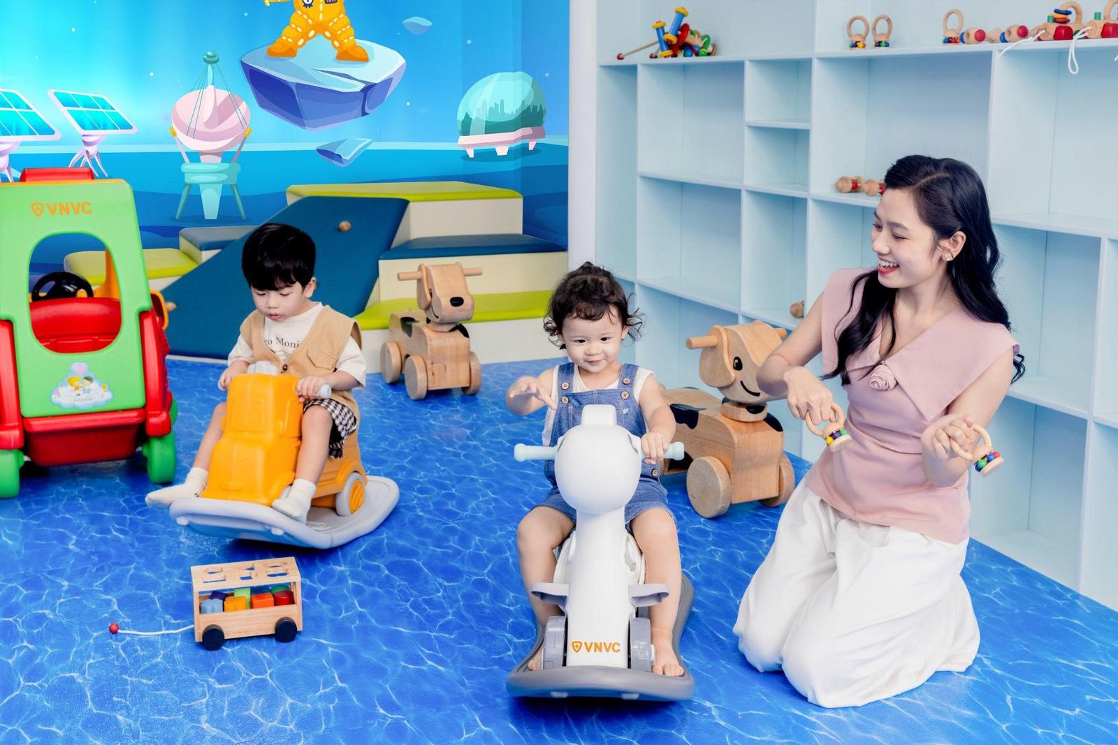 Khu vui chơi Tiêm chủng VIP trang bị nhiều đồ chơi kích thích sự sáng tạo theo phương pháp giáo dục Montessori. Ảnh: Ngân Hà