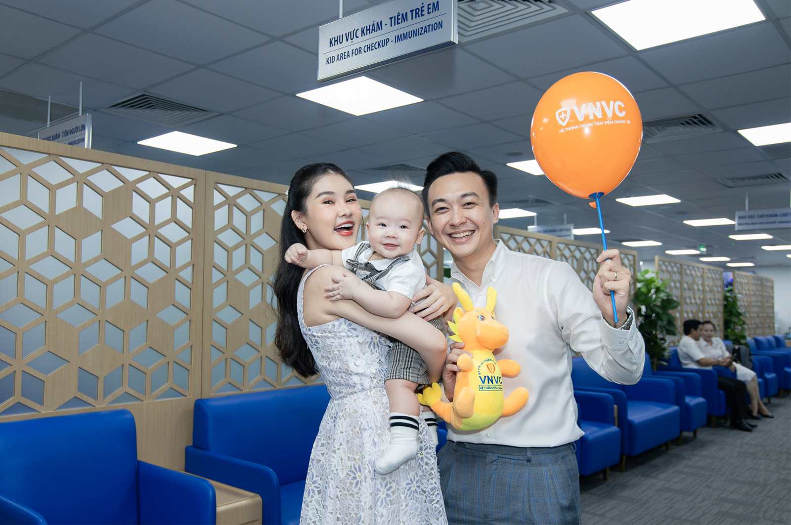 Gia đình Hoa hậu đại dương Lê Âu Ngân Anh và BTV Phan Tô Ny trải nghiệm dịch vụ tiêm chủng VIP đẳng cấp quốc tế tại VNVC Hoàng Văn Thụ. Ảnh: Ngân Hà