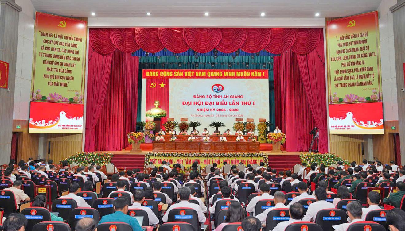 Đại hội đại biểu Đảng bộ tỉnh An Giang lần thứ I, nhiệm kỳ 2025 - 2030 có ý nghĩa đặc biệt quan trọng trong bối cảnh tỉnh vừa trải qua quá trình sáp nhập, mở ra thời kỳ phát triển mới, toàn diện và bền vững. Phương châm của Đại hội là “Một An Giang - Một tầm nhìn - Một ý chí - Một niềm tin thắng lợi”.