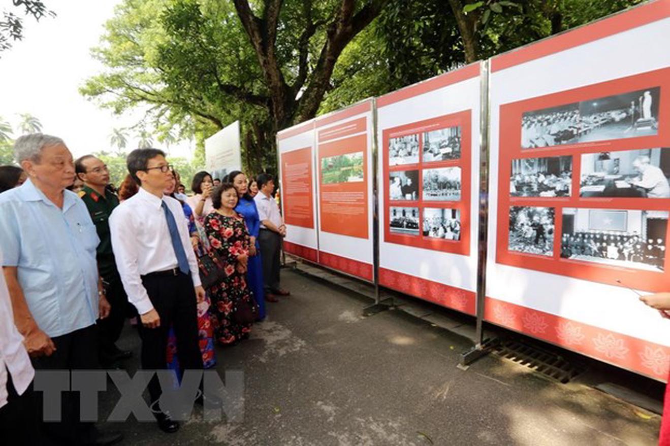 Ngay sau hội nghị, Phó Thủ tướng Vũ Đức Đam cùng các đại biểu đã cắt băng khai mạc triển lãm “50 năm bảo tồn và phát huy giá trị Khu Di tích Chủ tịch Hồ Chí Minh tại Phủ Chủ tịch” tại khu Đường Xoài.
