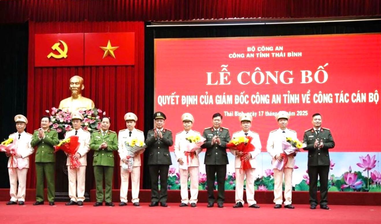 Ngày 17/2, Công an tỉnh Thái Bình tổ chức lễ công bố các quyết định của Giám đốc Công an tỉnh về công tác cán bộ đối với 6 lãnh đạo các phòng xung phong, tình nguyện nghỉ công tác trước hạn tuổi.