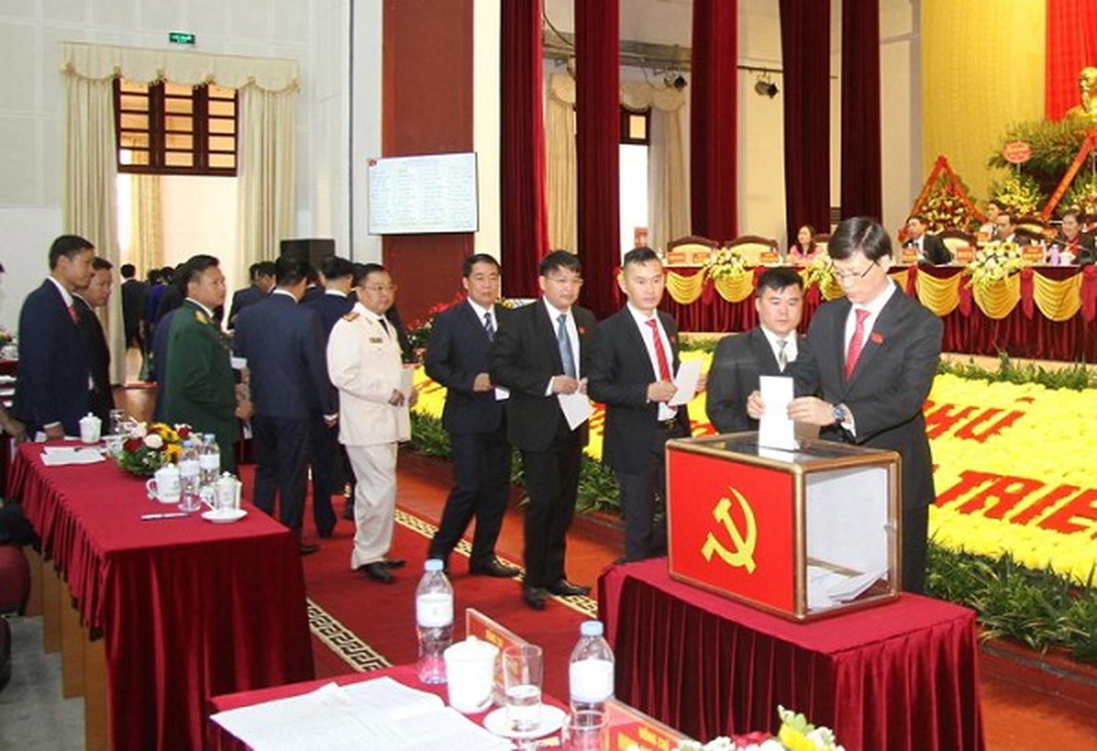 Đại biểu bỏ phiếu bầu Ban Chấp hành Đảng bộ tỉnh khóa XIV, nhiệm kỳ 2020-2025. Ảnh: Lai Châu