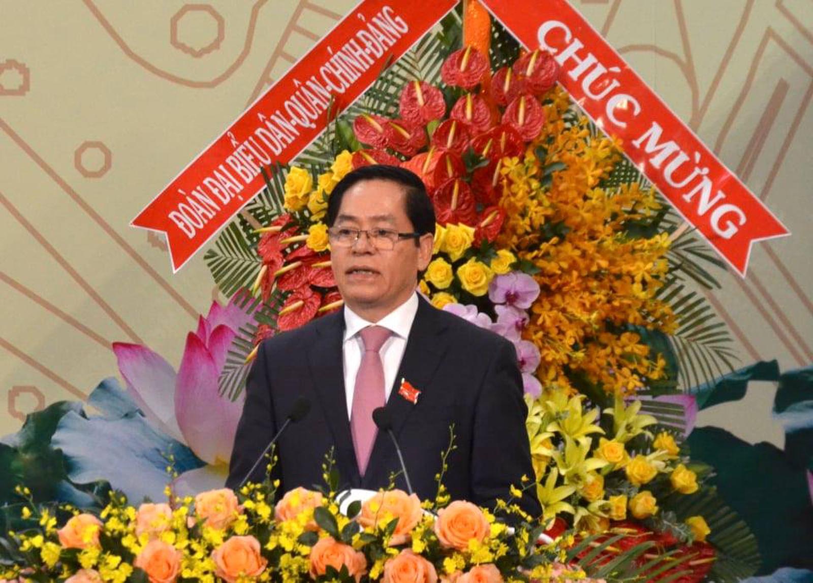 Ông Phạm Viết Thanh, Ủy viên Trung ương Đảng, Bí thư Tỉnh ủy đọc diễn văn khai mạc Đại hội. (Ảnh: Báo BR-VR)