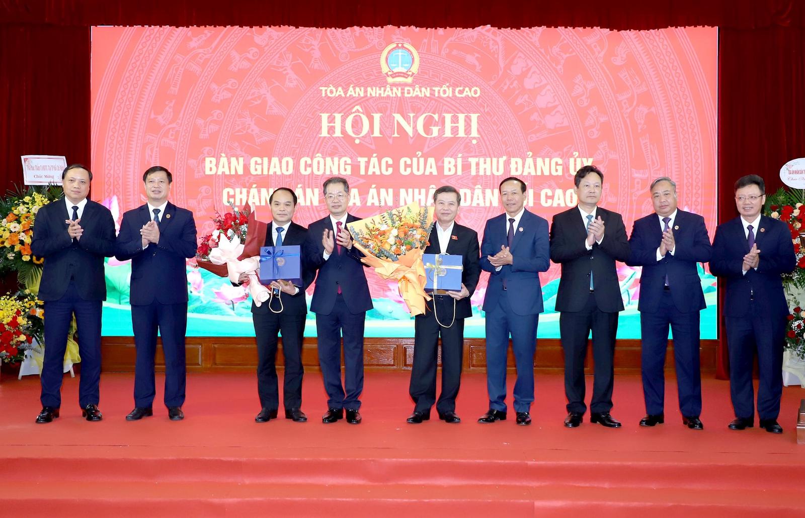 (Thanh tra) - Chiều 10/11, Ban Thường vụ Đảng ủy, lãnh đạo Tòa án Nhân dân (TAND) Tối cao tổ chức Hội nghị bàn giao công tác của Bí thư Đảng ủy, Chánh án TAND Tối cao giữa ông Lê Minh Trí, Bí thư Trung ương Đảng, Phó Trưởng ban Thường trực Ban Nội chính Trung ương và ông Nguyễn Văn Quảng, Ủy viên Trung ương Đảng, Bí thư Đảng ủy, Chánh án TAND Tối cao.