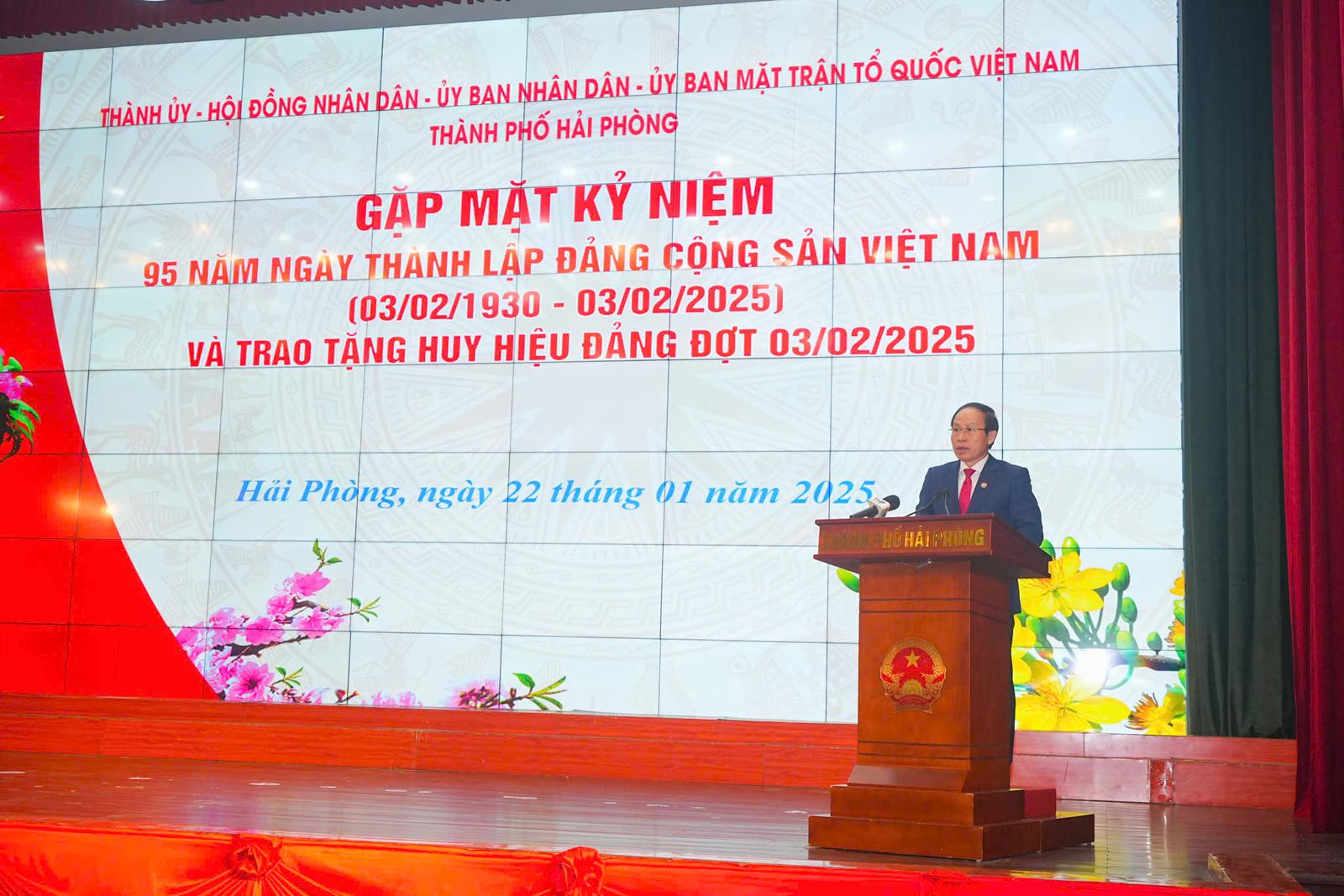 (Thanh tra) - Ngày 22/1, Ban Thường vụ Thành uỷ Hải Phòng long trọng tổ chức chương trình gặp mặt Kỷ niệm 95 năm Ngày thành lập Đảng Cộng sản Việt Nam (3/2/1030 - 3/2/2025) và trao tặng Huy hiệu Đảng đợt 3/2/2025, tại Trung tâm Hội nghị thành phố.