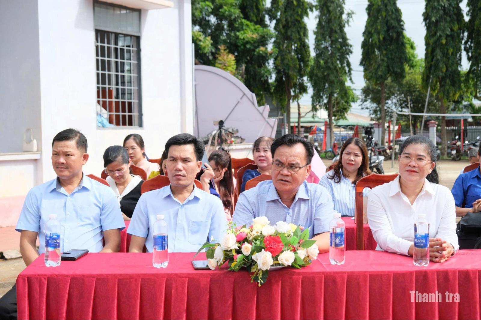 Đại diện Báo Thanh tra, Hệ thống Giáo dục ISMART và lãnh đạo địa phương chụp ảnh lưu niệm tại công trình. Ảnh: NG
