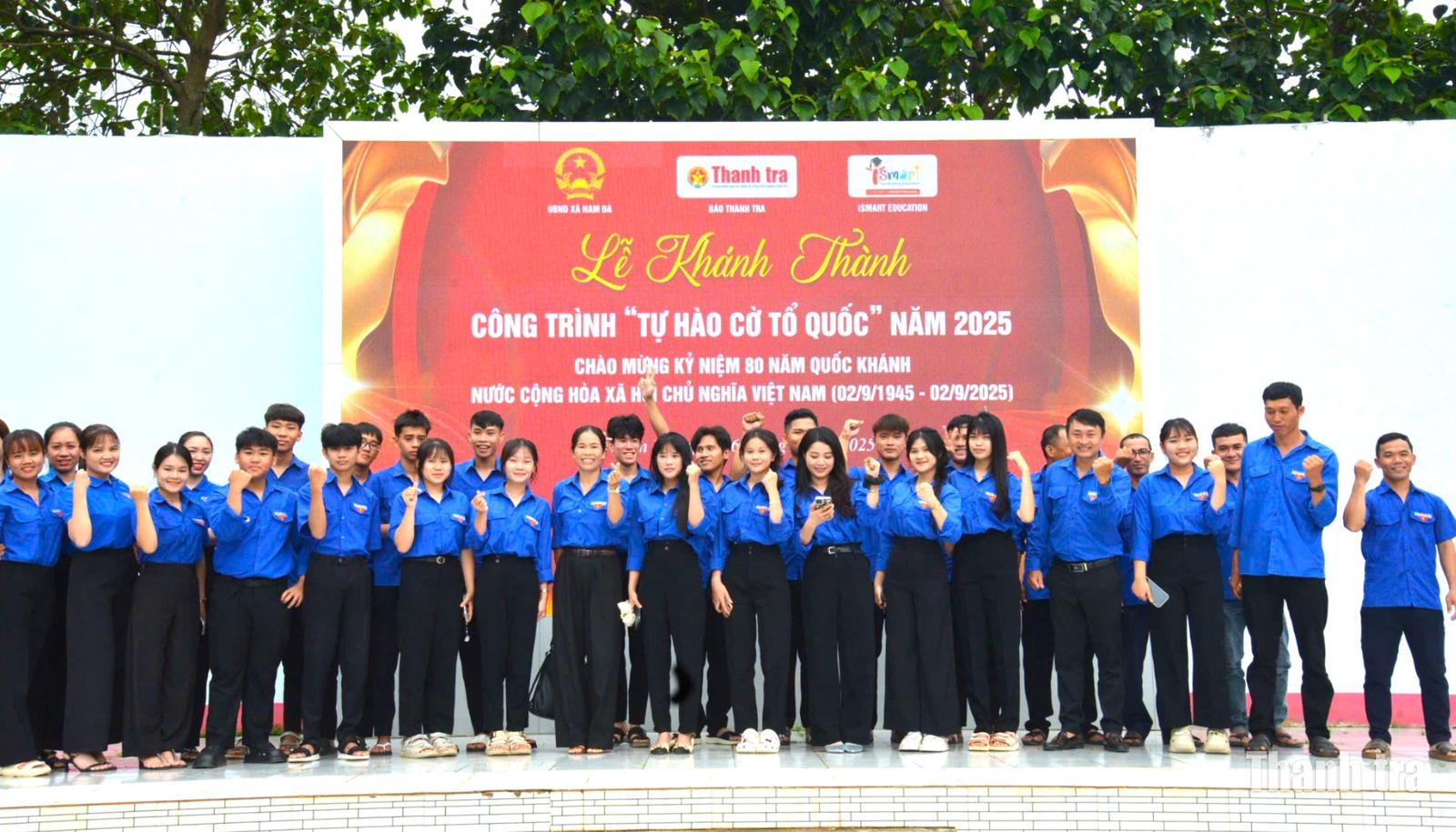 Thế hệ trẻ xã Nam Đà rạng rỡ tại Lễ khánh thành công trình "Tự hào cờ Tổ quốc", thể hiện niềm tự hào và trách nhiệm đối với quê hương, đất nước. Ảnh: NG