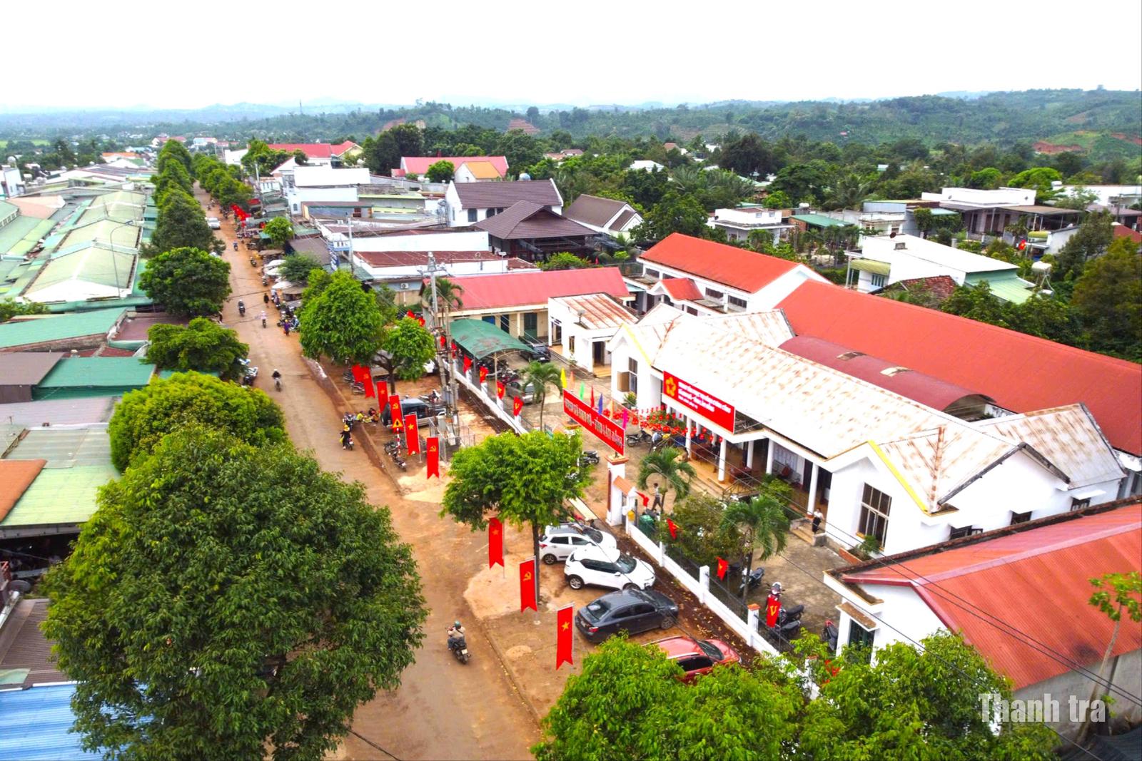 Những lá cờ Đảng, cờ Tổ quốc tung bay trên các tuyến đường nông thôn mới, góp phần làm tươi sáng diện mạo quê hương. Ảnh: NG