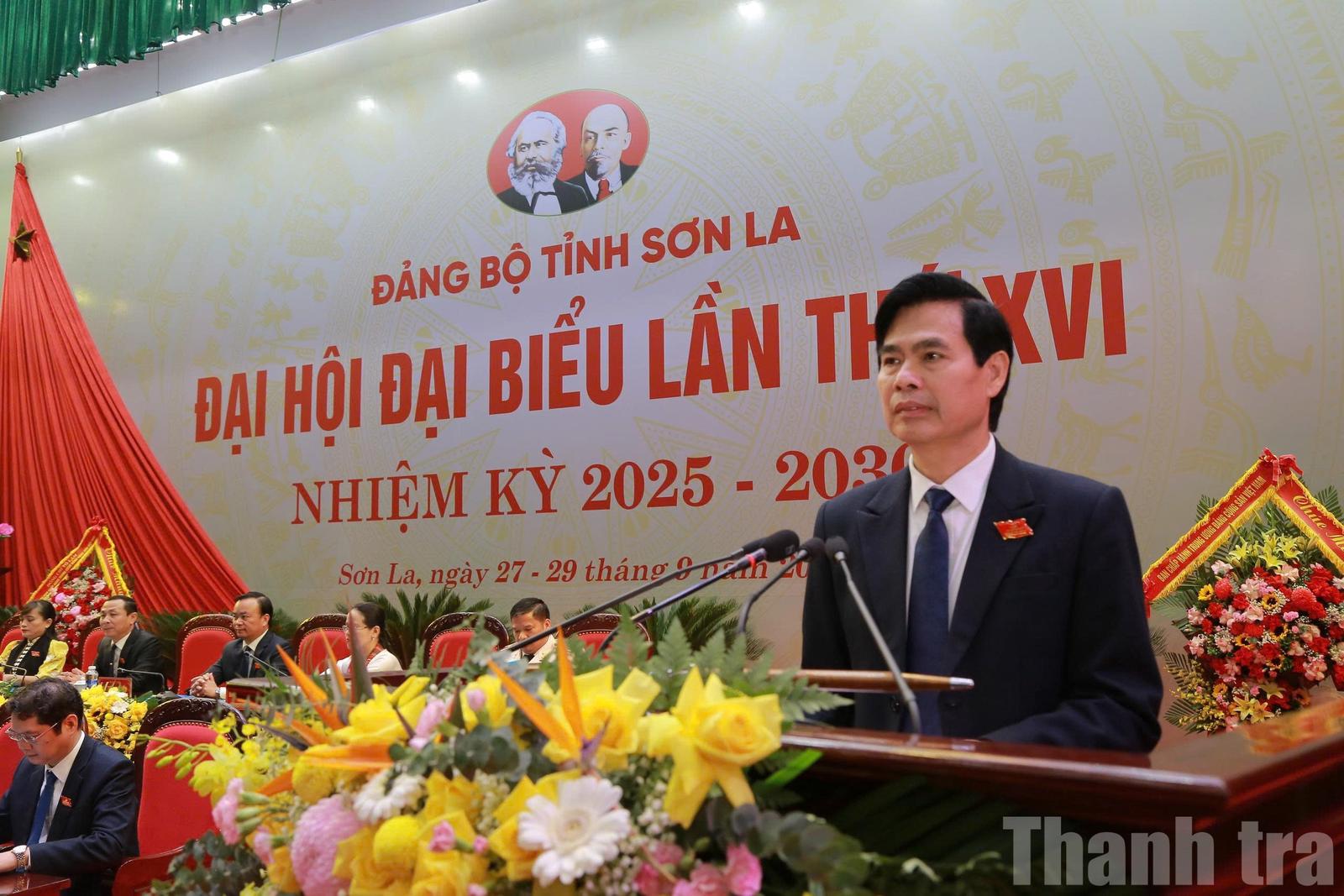 Trình bày báo cáo chính trị của Ban Chấp hành Đảng bộ tỉnh Sơn La khóa XV trình Đại hội Đảng bộ tỉnh lần thứ XVI, ông Hoàng Quốc Khánh, Bí thư Tỉnh ủy Sơn La đã nêu bật những thành tựu quan trọng trên tất cả các lĩnh vực của tỉnh dưới sự quan tâm lãnh đạo và chỉ đạo kịp thời, hiệu quả của Trung ương Đảng, Quốc hội, Chính phủ; sự phối hợp, giúp đỡ của các ban, bộ, ngành Trung ương; sự đoàn kết, nỗ lực, phấn đấu, vươn lên, giành được của Đảng bộ, chính quyền, quân và dân các dân tộc trong tỉnh.