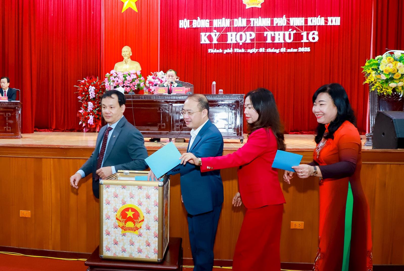Cũng tại kỳ họp, HĐND thành phố Vinh bầu 12 Ủy viên UBND thành phố và 58 vị vào Hội thẩm Nhân dân của Tòa án Nhân dân thành phố Vinh.