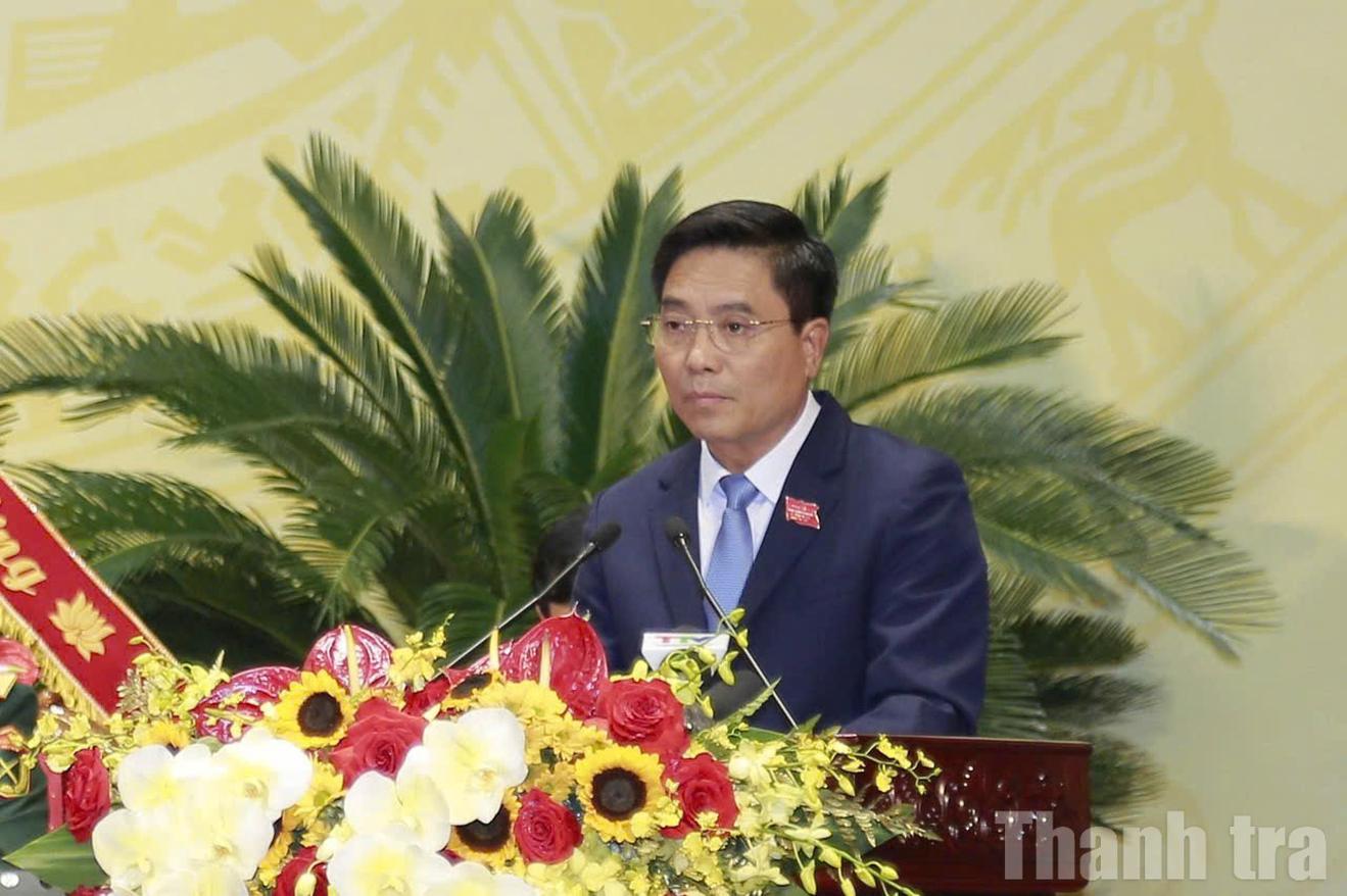 Đồng chí Nguyễn Hoài Anh, Ủy viên dự khuyết Trung ương Đảng, Chủ tịch UBND tỉnh Thanh Hóa, thay mặt Đoàn Chủ tịch điều hành phần biểu quyết thông qua Báo cáo tổng hợp ý kiến đóng góp vào dự thảo các văn kiện trình Đại hội XIV của Đảng.