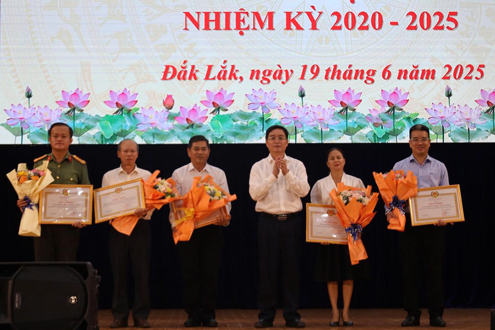 Tại hội nghị, Ban Thường vụ Tỉnh ủy Đắk Lắk đã tặng Bằng khen cho 5 tập thể và 11 cá nhân, UBKT Tỉnh ủy Đắk Lắk tặng Giấy khen cho 8 đơn vị và 17 cá nhân có thành tích xuất sắc trong công tác kiểm tra, giám sát nhiệm kỳ 2020-2025.