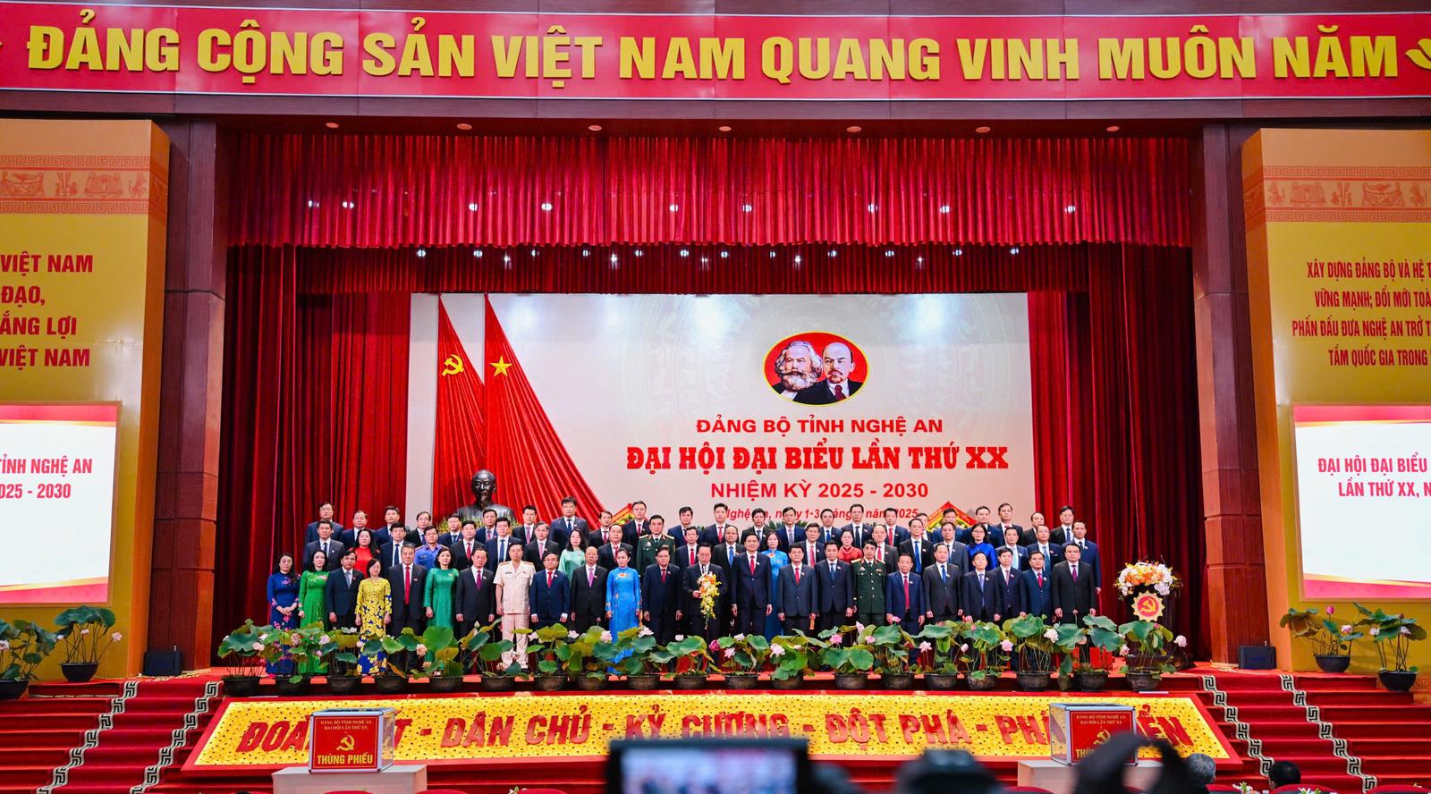 Đại hội đại biểu lần thứ 20 Đảng bộ Nghệ An nhiệm kỳ 2025-2030 diễn ra từ ngày 1 - 3/10, với chủ đề "Xây dựng Đảng bộ và hệ thống chính trị trong sạch, vững mạnh; đổi mới toàn diện, phát triển đột phá, phấn đấu đưa Nghệ An trở thành tỉnh khá, cực tăng trưởng tầm quốc gia trong kỷ nguyên phát triển mới". Phương châm hành động là "Đoàn kết - Dân chủ - Kỷ cương - Đột phá - Phát triển". Đại hội có 500 đại biểu, đại diện hơn 200.000 đảng viên.