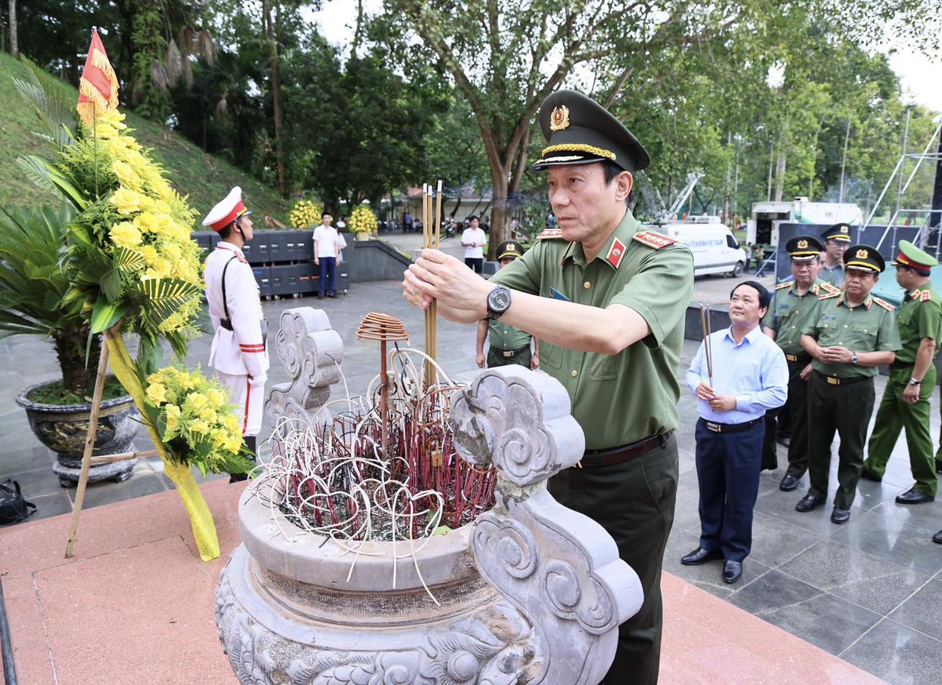 Đại tướng Lương Tam Quang, Ủy viên Bộ Chính trị, Bộ trưởng Bộ Công an cùng Đoàn công tác của Bộ Công an đã tới dâng hương tại Khu di tích Nha Công an Trung ương. Ảnh: ND