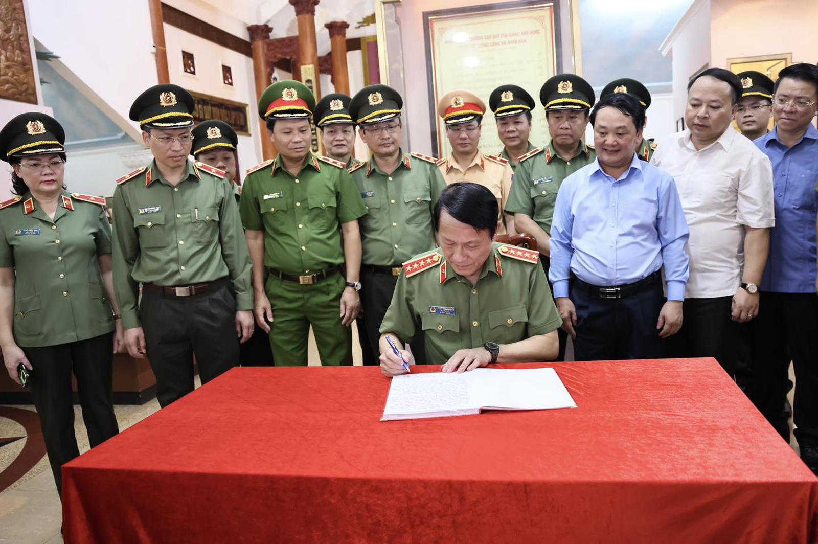 Bộ trưởng Bộ Công an, Đại tướng Lương Tam Quang viết sổ lưu niệm tại Khu di tích lịch sử Nha Công an Trung ương